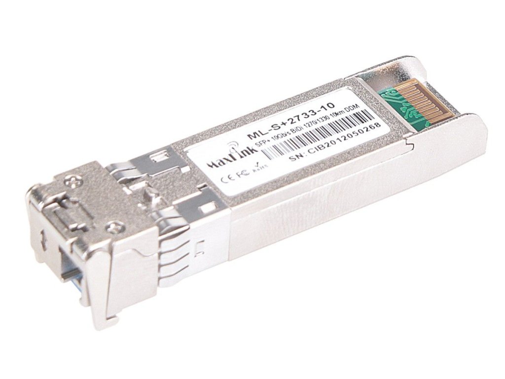MaxLink 10G SFP+ optický modul, WDM(BiDi), SM, Tx 1270/Rx1330nm, 10km, 1x LC konektor, DDM ML-S+2733-10 je singlemode 10G SFP+ WDM modul pro přenos dat pomocí jednoho vlákna s jedním LC konektorem. Vlnová délka (Tx/Rx) tohoto modulu je 1270/1330nm a je vhodný pro spojení až na vzdálenost 10km. Modul je ''cisco compatibile'' a je kompatibilní téměř se všemi aktivními prvky. LC konektory v SFP modulu mají broušení typu UPC.