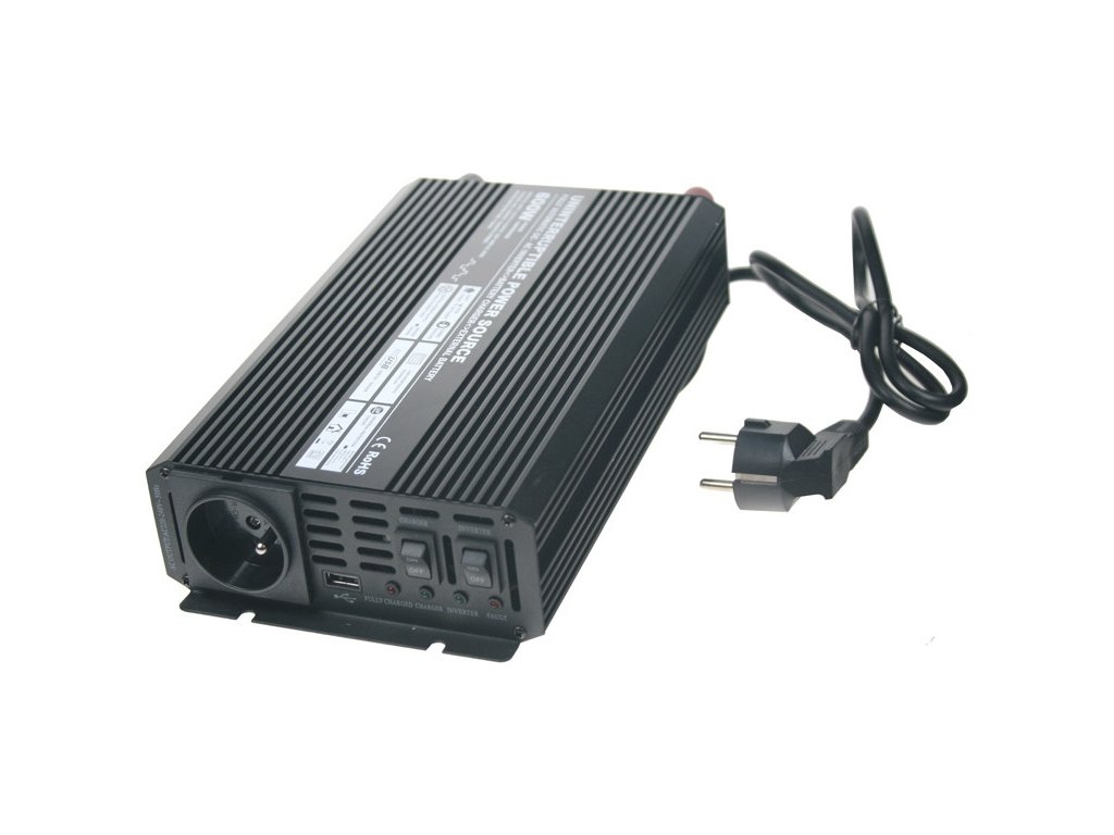 CARSPA UPS série - měnič s nabíječkou funguje jako nabíječka, frekvenční měnič a off-line UPS současně. Tato technologie zajistí, že Vaše zařízení pracuje nepřetržitě i po výpadku proudu. Stačí připojit baterii o velikosti dle Vaší potřeby Vlastnosti produktu: · České zásuvky · Ultra-rychlý přenos Relé: <8 ms · L.I.T: Nízká interference technologie · Univerzální ochranný obvod: ochrana proti přetížení, zkratu, přehřátí, zajištěna dlouhá životnost baterie, měkký start. · Automatické 3 fázové dobíjení interní nabíječky baterií · USB port: 5V 500mA · Rozhodněte se pro svou vlastní AC dobu zálohování výběrem různých baterií! Funkce ochrany: · Nízké napětí: alarm a vypnutí · Ochrana proti přepětí · Ochrana proti přetížení · Teplotní ochrana · Ochrana proti zkratu · Ochrana proti přepólování · Měkký start · Auto.reset · Uzemnění ochrany Technické parametry: -Rozměry: 330 x 150 x 58mm -Váha: 2,1 kg -USB-ANO -12V/230V -Výstup 600W trvale, 1200W špička -modifikovaná sinusovkaDodatočné parametre