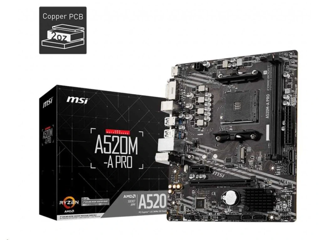 MSI MB Sc AM4 A520M-A PRO, AMD A520, 2xDDR4, m-ATX