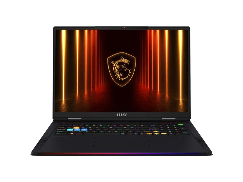 MSI Raider 18 HX AI A2XWJG-458CZ * systém chlazení Cooler Boost 5 se 2 ventilátory a 7 trubicemi * Mystic Light * certifikace VESA DisplayHDR™ 1000 * technologie OverBoost Ultra * architektura NVIDIA Blackwell, DLSS 4 a Max-Q * MSI AI Engine Operační systém: Windows 11 Pro Procesor: Intel Core Ultra 9 285HX (24 jader - 8P + 16E, 24 vláken, P-core 2,8/5,5 GHz, E-core 2,1/4,6 GHz, 36 MB cache) Paměť: 2x 32GB DDR5-6400 Počet slotů (celkem/volných): dva sloty DDR5-6400 (2/0) Maximální velikost: 96GB Pevný disk: 2TB M.2-2280 NVMe PCIe Gen4x4 SSD Úložiště: 1x M.2 SSD slot (NVMe PCIe Gen4), 1x M.2 SSD slot (NVMe PCIe Gen5) kompatibilní Optická mechanika: ne Čtečka paměťových karet: SD Express Displej: 18'' UHD+ (3840x2400) antireflexní MiniLED, 120Hz, 3ms (GtG), 100% DCI-P3 Grafická karta: NVIDIA® GeForce RTX™ 5090, 24GB GDDR7 Audio: Dynaudio systém 4x 2W + 2x 2W basový, Nahimic 3 Audio rozšíření, podpora Hi-Res Audio Web kamera: IR FHD (30fps@1080p) s HDR, 3DNR+ Polohovací zařízení: Silky Smooth Touchpad Podsvícená klávesnice: RGB Numerická klávesnice: ano Čtečka otisku prstu: ano Síť: REALTEK/RTL8125BG-CG, 2,5GbE Bezdrátová komunikace: WLAN + Bluetooth (Intel® Killer™ Wi-Fi 7 BE1750 + Bluetooth v5.4) Porty USB: * 2x Thunderbolt™ 5 (DisplayPort™/Power Delivery 3.1) * 3x USB 3.2 Gen2 typu A Ostatní porty: * 1x SD Express čtečka karet * 1x HDMI™ 2.1 (8K@60Hz/4K@120Hz) * 1x RJ45 * 1x kombinovaný konektor pro sluchátka/mikrofon (3,5mm) * 1x napájecí konektor * 1x slot pro zámek Kensington Zabezpečení: krytka webkamery/firmware Trusted Platform Module (fTPM) 2.0/čtečka otisku prstu/Kensington Lock Baterie: 4článková, 4S1P, 99,9Wh Napájení: 400W Barva: Core Black Materiál: kov + plast Rozměry: 404x307,5x24-32,05mm Hmotnost: 3,6kg Záruka: 2 roky Odkaz na stránku výrobce: https://www.msi.com/Laptop/Raider-18-HX-AI-A2XWXDodatočné parametre