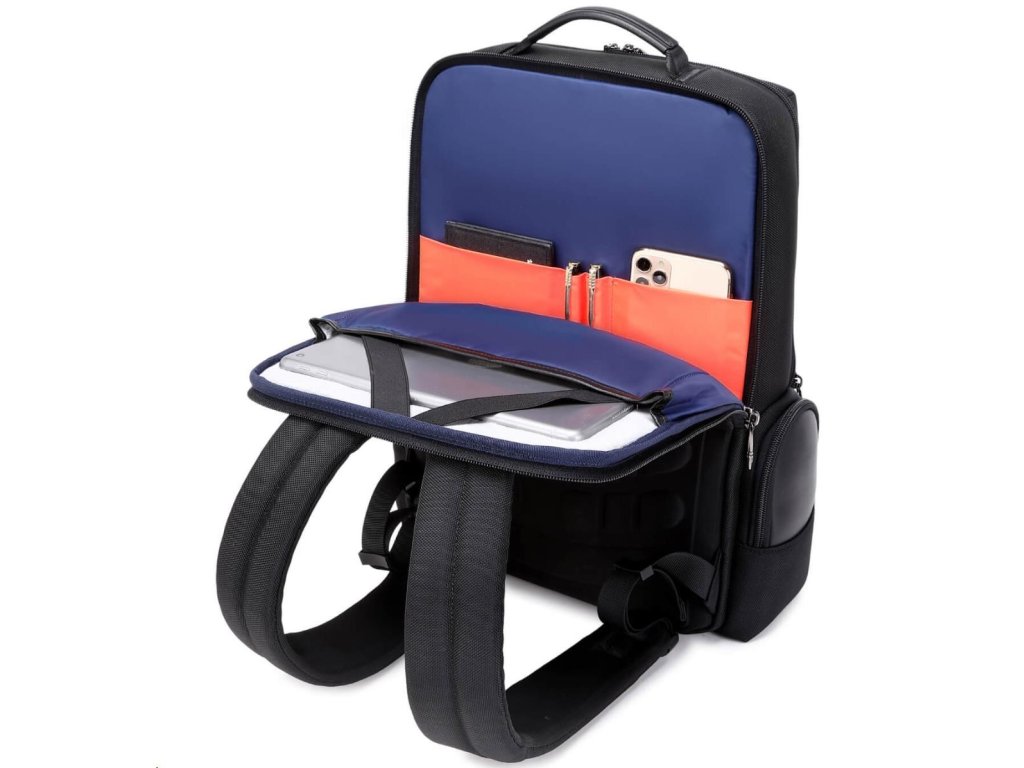 MYBALO ASTON Perfektní volba pro minimalisty s dobrým vkusem 6 ikon: - Nejtenčí batoh - Elegantní - Kapsa na notebook do 15,6" - Kapsa na tablet do 9" - Otevírání o 180 stupňů - USB a USB-C port - Drží tvar - Voděodolný - Skryté kapsy Elegantní a minimalistický Jedná se o velmi elegantní a minimalistický batoh. S tímto parťákem neuděláte chybu při běžném nošení do města, ani na důležité schůzce. Tenký batoh MYBALO Aston je batoh s vůbec nejmenší hloubkou z naší nabídky. Díky tomu působí elegantně a minimalisticky, ale i přesto se do něj vejdou všechny vaše nezbytnosti. Kvalitní voděodolný materiál, dlouhá životnost Kvalitní umělá kůže zajišťuje trvanlivost a odolnost batohu proti vodě a opotřebení. MYBALO Aston tak bude vaším společníkem opravdu dlouho. Drží tvar Batoh si zachovává svůj tvar také v případě, že jej budete mít úplně prázdný. Vestavěný USB a USB-C port Nabíjejte svá elektronická zařízení kdekoli a kdykoli díky vestavěnému USB a USB-C portu. Popruh k uchycení na kufr Cestujte pohodlně. Kdykoli chcete mít volná záda, jednoduše připevněte batoh na rukojeť svého kufru. Pohodlné polstrování Užijte si komfortní nošení díky kvalitnímu a prodyšnému polstrování ramenních popruhů a zádové části. Další praktické kapsy Zorganizujte si pohodlně a snadno své věci díky množství vychytaných kapes. Skryté kapsy V zádové části a na ramenním popruhu najdete skryté kapsy pro bezpečné uložení cenností. Vnitřní kapsy Vnitřní kapsy slouží pro snadnou organizaci všech vašich věcí. Přední kapsa Přední kapsa je určena pro věci, které chcete mít rychle a snadno po ruce. Parametry: - Rozměry: 46 x 30 x 9 cm - Objem: 11 l - Hmotnost: 1,19 kg - Kapsa na notebook: Ano (do vel. 15,6") - Kapsa na tablet: Ano (do vel. 9") - USB port: Ano - Voděodolnost: Ano - Hlavní materiál: Ekokůže + Polyester - Podšívka: Polyester - Barva: ČernáDodatočné parametre
