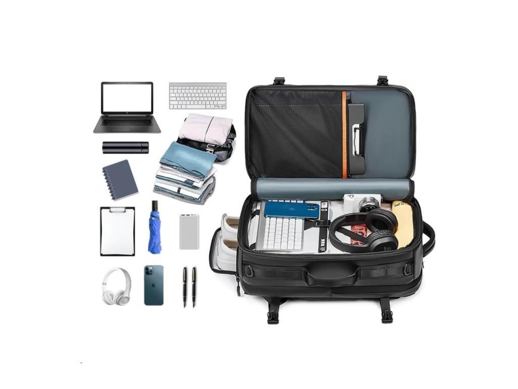Chcete využiť MYBALO Traveler do práce alebo na dôležité stretnutie a nechcete mať na chrbte batoh? Žiadny problém! Jednoducho skryte ramenné popruhy do pripravených vreciek a noste ho ako tašku do ruky alebo po pripnutí ramenného popruhu ako tašku na rameno.