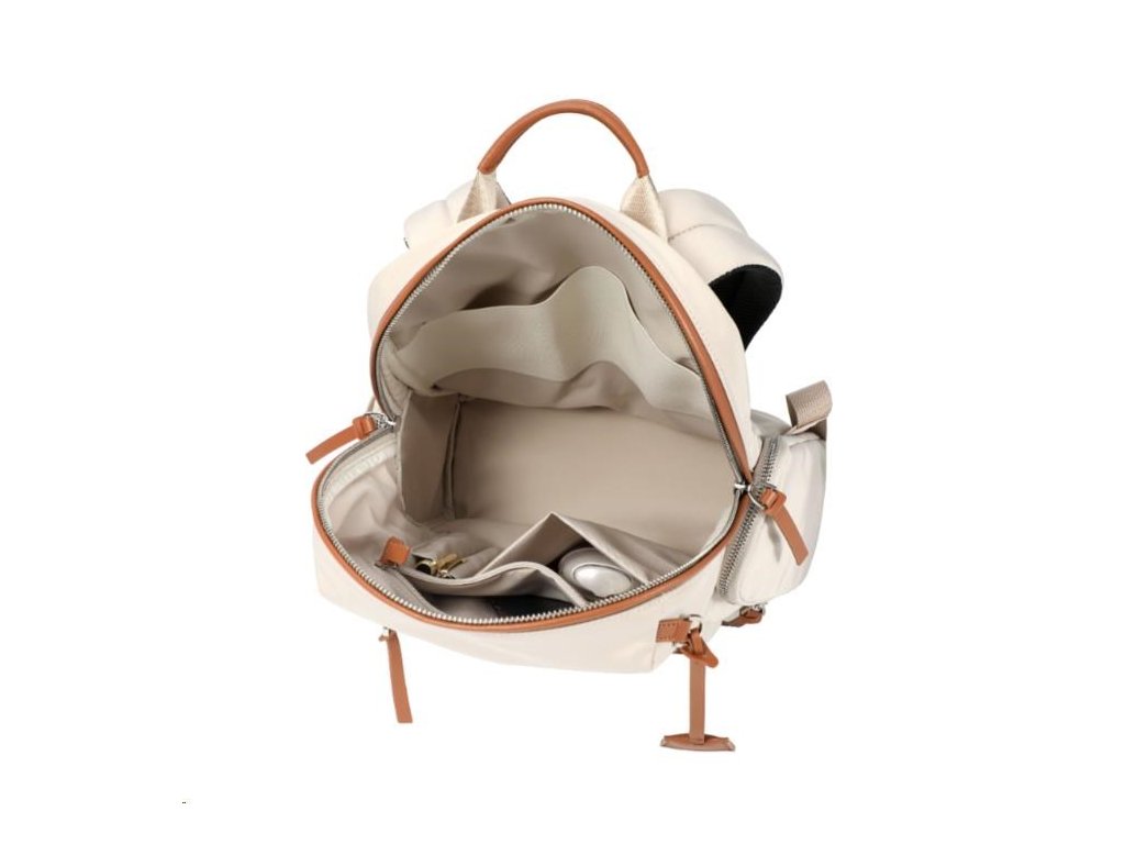 Batoh je dostupný vo dvoch farebných variantoch: béžové s hnedými detailmi a čierne, univerzálne k rôznemu oblečeniu.