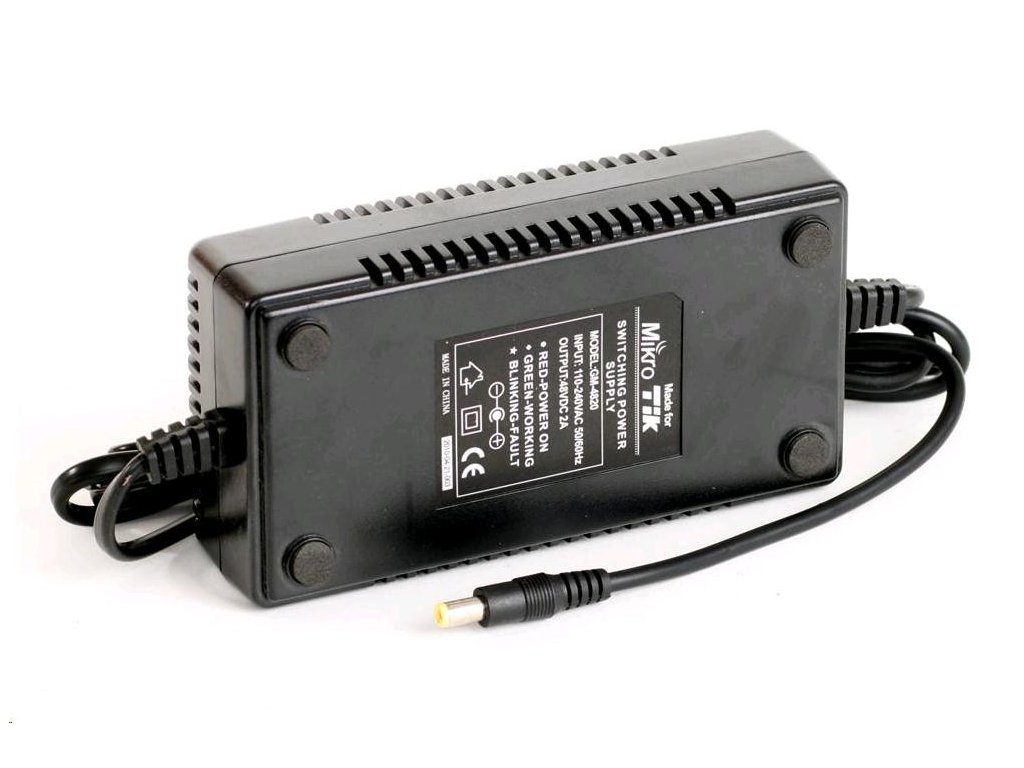 napájací zdroj 48 V/2 A (96 W) pre RouterBOARD, ALIX. Vhodné pre smerovače s viacerými kartami mini-PCI alebo dcérskymi doskami..