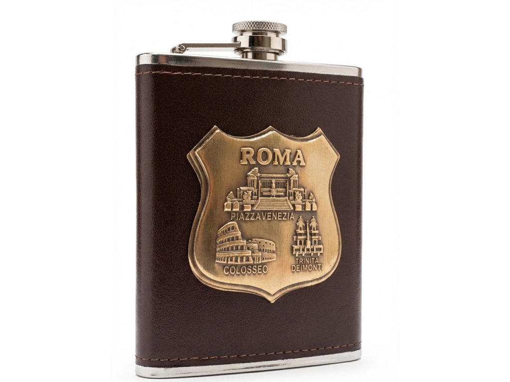 Táto štýlová ploskačka je dokonalým darčekom pre milovníkov cestovania a histórie, špeciálne pre obdivovateľov Talianska. Kombinácia nerezovej ocele a tmavohnedej koženky pôsobí luxusne a zároveň tradične.