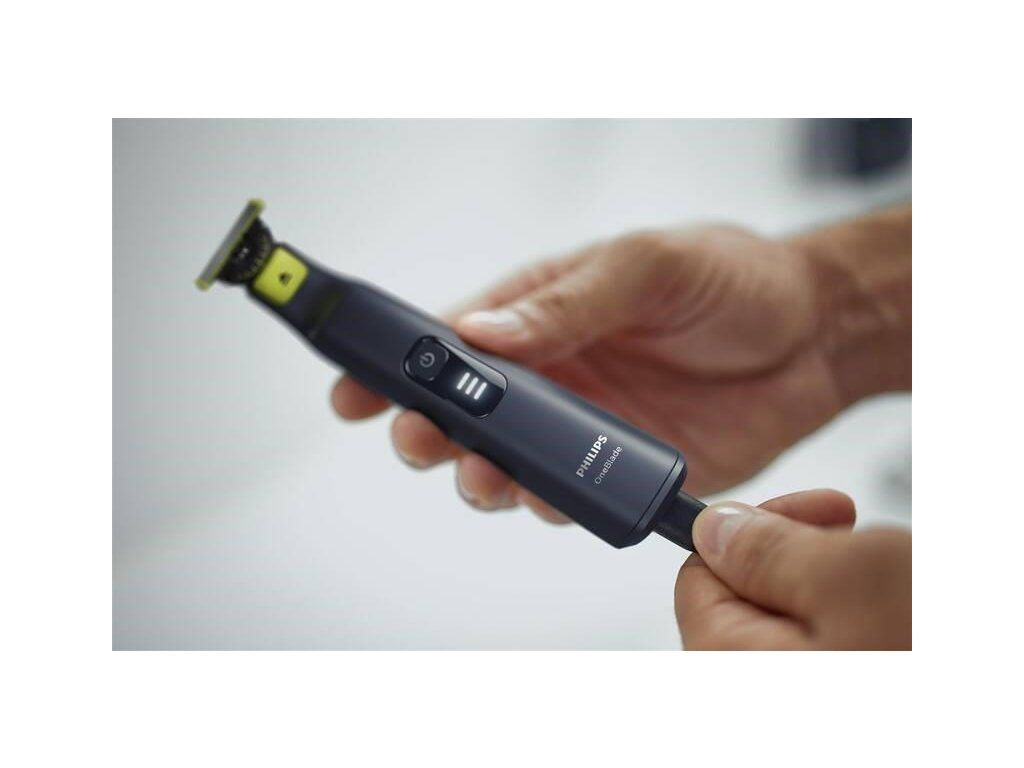 Se zastrihovačom Philips QP6542/15 OneBlade Pro 360 doladíte svoj vzhľad k dokonalosti. Upravovať podľa libosti môžete tvár a všetky telesné partie. Holí, zastrihuje fúzy, tvaruje bradu, vytvára presné čiary, vašu tvár skrátka upraví presne tak, ako chcete. Prístroj je určený na suché aj mokré použitie a je vhodný pre každodenné používanie aj tých, ktorí majú citlivú pokožku. Balenie obsahuje dva bity OneBlade 360, presný nástavec so 14 nastaveniami dĺžky zastriženia, nástavec na zastrihanie tela, extra šetrný chránič citlivých oblastí a kábel USB-A.