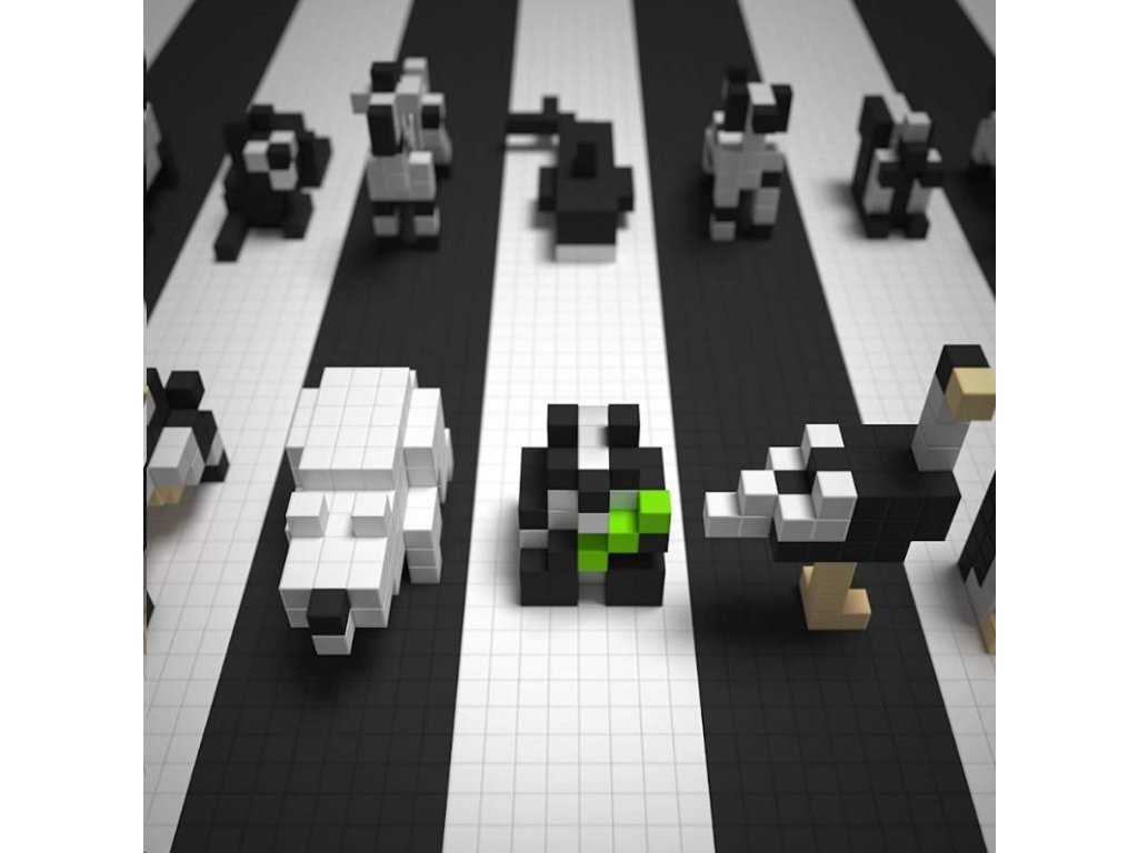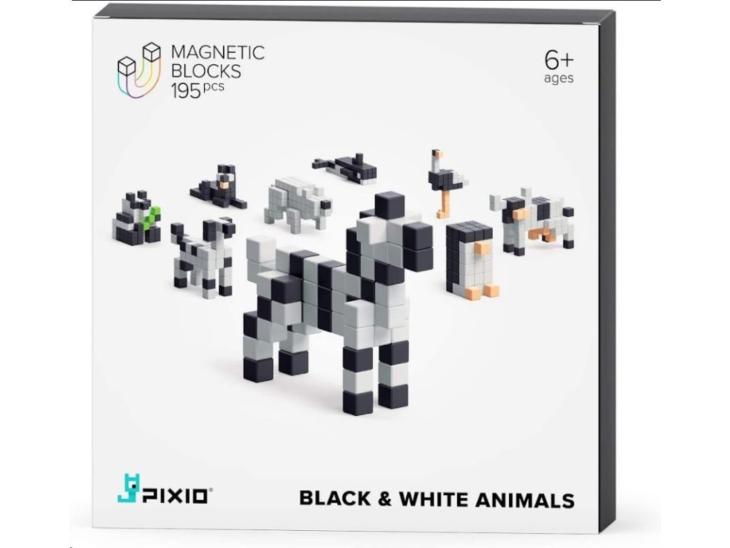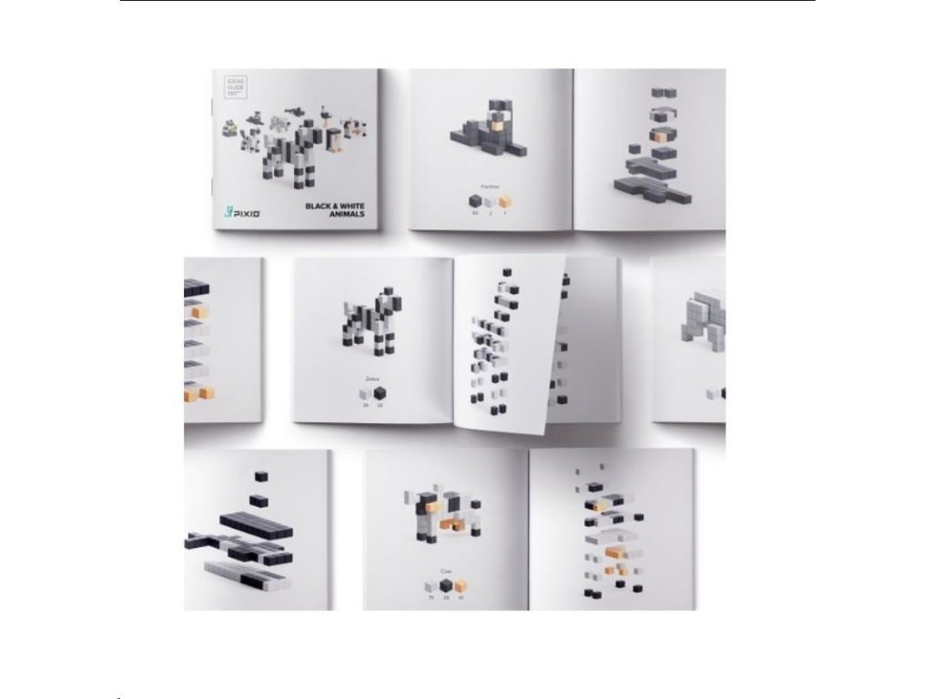 Dizajnová séria PIXIO BLACK AND WHITE Animals obsahuje 195 PIXIO blokov v 4 farbách. Umožňuje