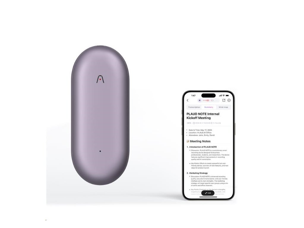 Plaud Note Pin využívá pokročilé technologie GPT-4 a Claude 3.5, které výrazně zvyšují kvalitu záznamu a transkripce. Díky těmto inteligentním systémům můžete snadno převádět své záznamy na text, vytvářet shrnutí, a dokonce generovat myšlenkové mapy. Tato inovativní funkčnost dává uživatelům možnost efektivně organizovat a spravovat informace s maximální přesností a pohodlím.