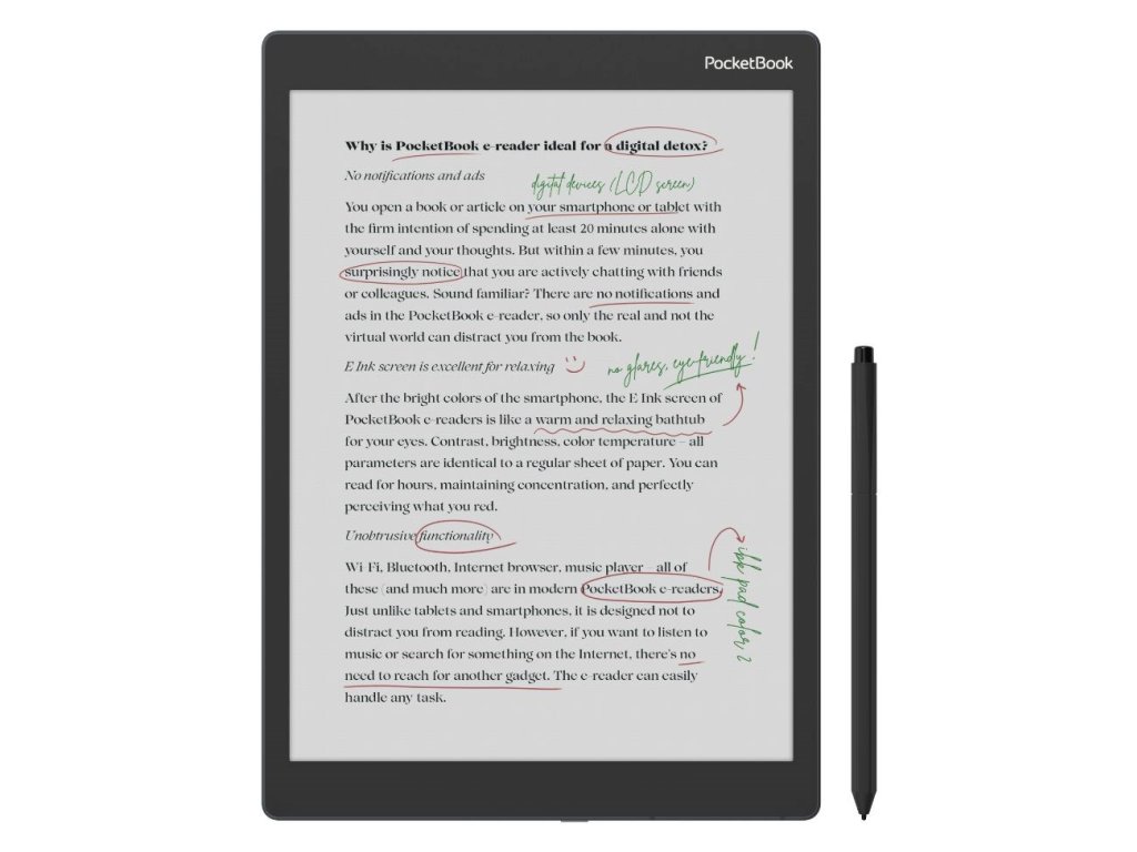 - Veľký farebný displej 10,3” E Ink Kaleido™ 3, bezpečný pre oči