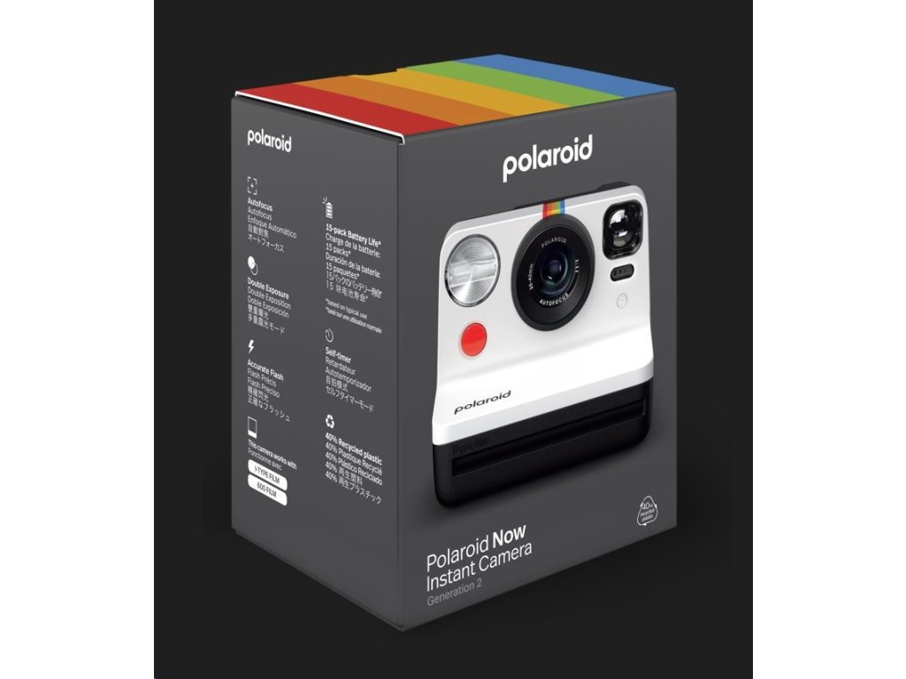 Polaroid Now Gen2 je k dispozícii v 4 žiarivých farbách vrátane čiernej, čiernobielej, červenej a modrej. Súčasťou balenia je náramok na zápästie a nabíjací USB kábel.