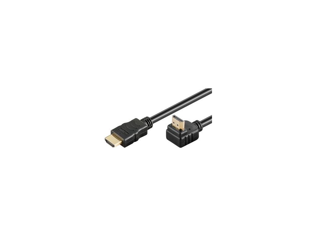 Kvalitní propojovací kabel pro spojení dvou audio/video zařízení přes moderní HDMI rozhraní, jako je např. HD-DVD/BluRay přehrávač a LCD/Plazma televizor. Kabel je stíněný, dokáže přenášet digitální zvuk i obraz a podporuje digitání ochranu obsahu HDCP. Kabel má navíc integrován vysokorychlostní přenos ethernetu. - Kabel byl dříve označován jako HDMI 1.4 , dle nové direktivy je správně označován jako HDMI High Speed + Ethernet kabel - Konektory A: HDMI zlacený typ A (19pinů) male - přímý konektor - Konektory B: HDMI zlacený typ A (19pinů) male - zahnutý konektor 90° - Maximální rozlišení: 4K (3840 × 2160) @ 30Hz nebo nižší podporované formáty 1080p FULL HD/1080i/720p/720i - Podporuje : HDMI 1.4 a nižší - Podporuje: 4K, Deep Color, 3D, xvYCC (xvColor), auto lip-sync, ARC, CEC, HDCP, Dolby TrueHD, HEC - Přenosová rychlost 10,2 Gb/s - Šířka pásma 340MHz - 3D video po HDMI připojení - Barevná hloubka: 24-bit (16.7 million barev). - Třívrstvé, vysoce kvalitní stínění - Zpětný audio kanál pro poslání signálu z tuneru TV zpět do domácího kina/surround systému - Přenos počítačové sítě (ethernetu) po HDMI kabelu - 19žilový kabel, třikrát stíněný, 100% měděné vodiče AWG30 - Barva černá - Délka kabelu: 5 mDodatočné parametre