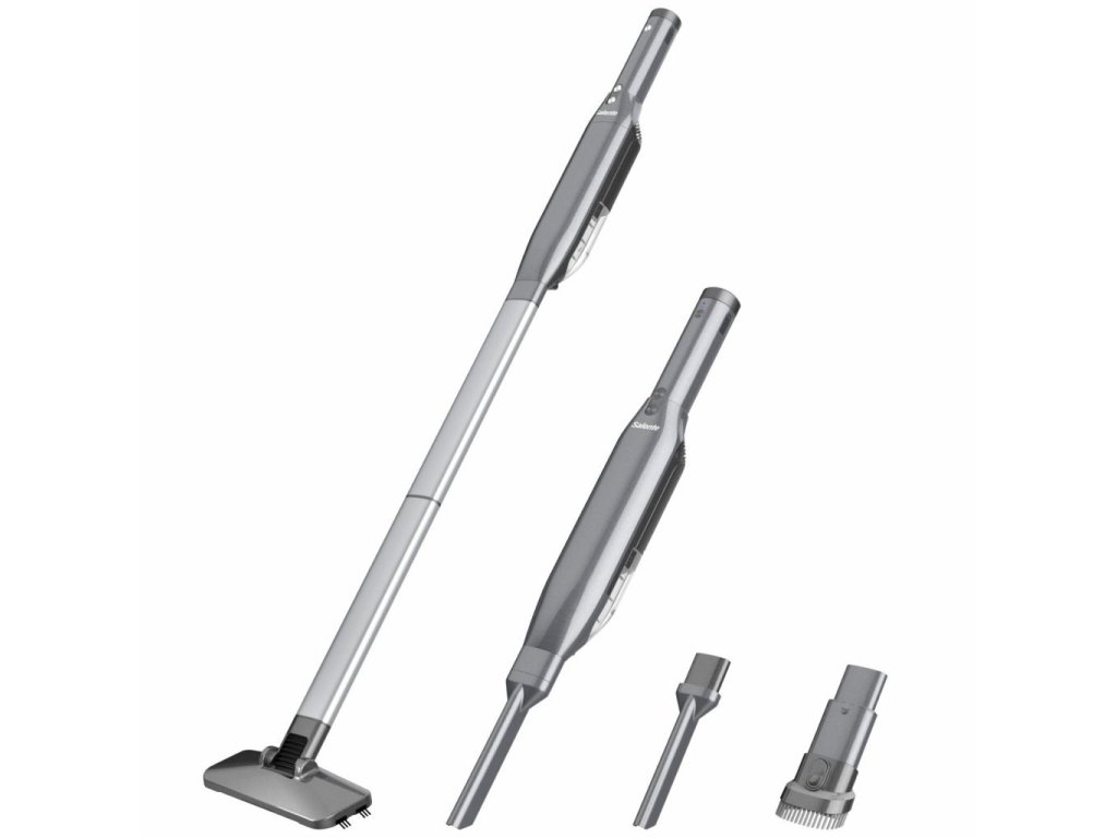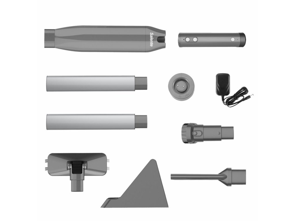 Salente HandyPlus je dodávaný s praktickým stojanom, štetkou na škáry a hubicou 2v1. Hubicu 2v1 môžete využiť ako samostatnú štetku na škáry na upratovanie ťažko dostupných miest alebo vysunutím prachového štetca jemne odstrániť prach zo žalúzií, kníh alebo klávesnice.