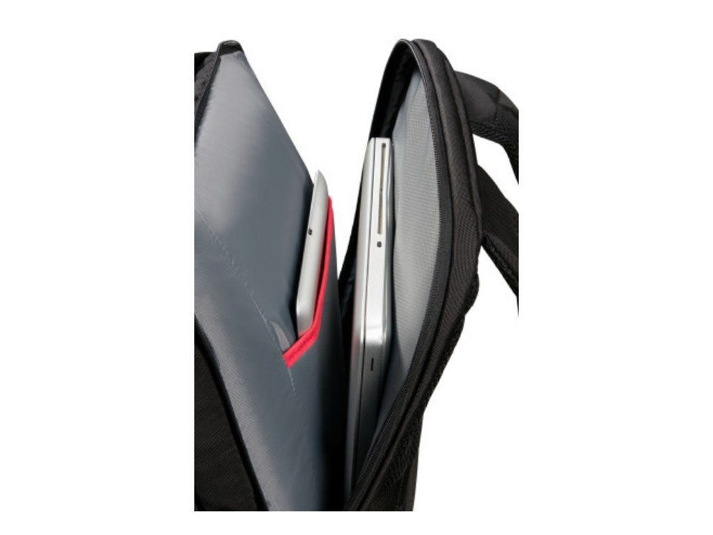 Batoh na notebook Samsonite LAPTOP. BACKPACK L 17,3'' z kolekce Guardit 3.0. Materiál: Recyclex - vyrobeno z recyklovaného PET Popis: voděodolný prostor pro tablet: 26,7 cm / 10,5'' (18,3 x 26,6 x 1,5 cm) prostor pro notebook 43,9 cm / 17,3'' (28,7 x 42,2 x 3,3 cm) kapsa na láhev nastavitelné polstrované zádové popruhy zádové polstrování smart sleeve - tzv. návlekový pásek sloužící ke snadnému přichycení na rukojeť kufru rozměr: 32 x 48 x 20,5 cm objem 27,5 l váha 0,8 kg Záruka 2 roky.Dodatočné parametre