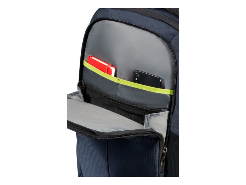 Batoh na notebook Samsonite LAPTOP. BACKPACK L 17,3'' z kolekce Guardit 3.0. Materiál: Recyclex - vyrobeno z recyklovaného PET Popis: voděodolný prostor pro tablet: 26,7 cm / 10,5'' (18,3 x 26,6 x 1,5 cm) prostor pro notebook 43,9 cm / 17,3'' (28,7 x 42,2 x 3,3 cm) kapsa na láhev nastavitelné polstrované zádové popruhy zádové polstrování smart sleeve - tzv. návlekový pásek sloužící ke snadnému přichycení na rukojeť kufru rozměr: 32 x 48 x 20,5 cm objem 27,5 l váha 0,8 kg Záruka 2 roky.Dodatočné parametre