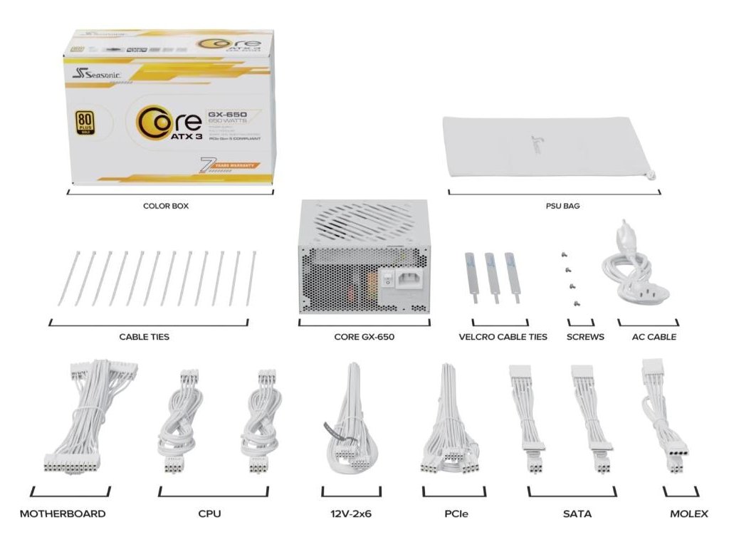 SEASONIC zdroj Core GX 650W White, 120mm, Plně modulární, 80+ Gold, ATX 3.1