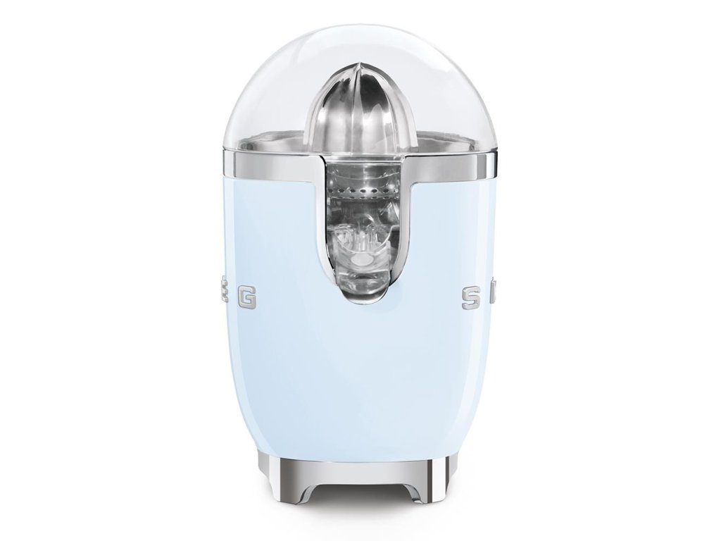Smeg CJF11PBEU citrusový odšťavňovač, 70 W, manuální tlak, univerzální kužel z nerezové oceli, pastelově modrý