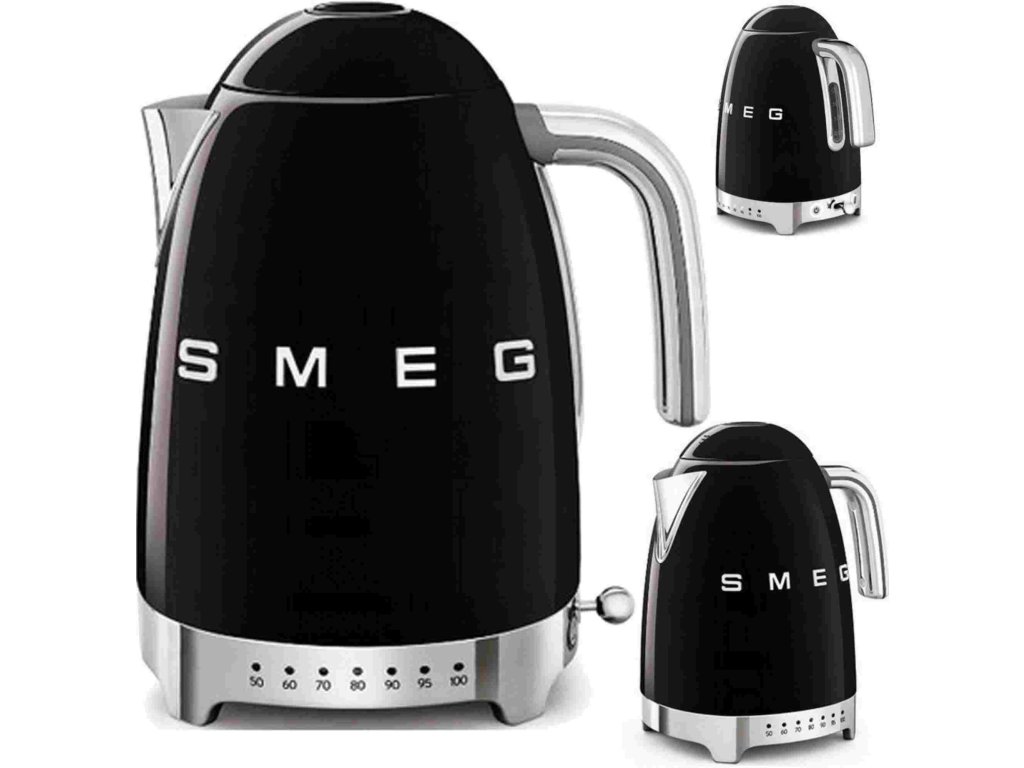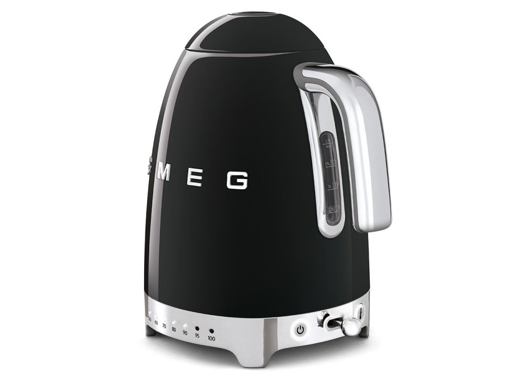 Smeg KLF04BLEU rychlovarná konvice, 1,7 l (7 šálků), 2400 W, styl 50. let, řízení teploty, 7 programů, černá
