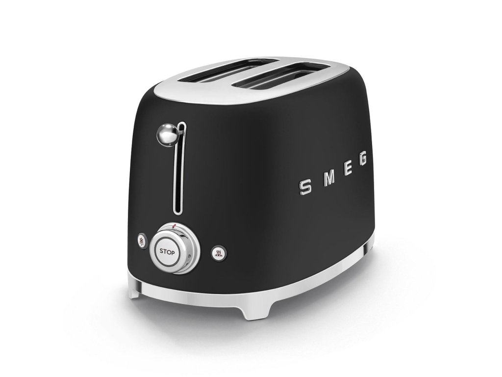 Smeg TSF01BLMEU toustovač / topinkovač, 2 toasty, 6 úrovní opékání, zásuvka na drobky, styl. 50. let, matně černá