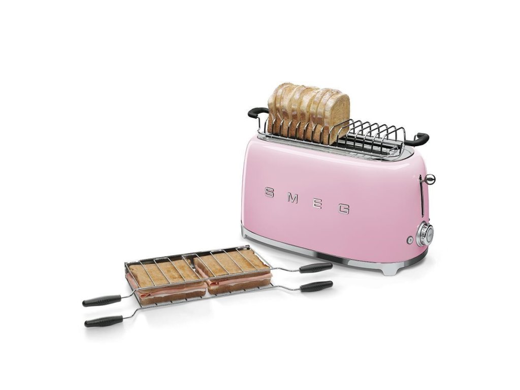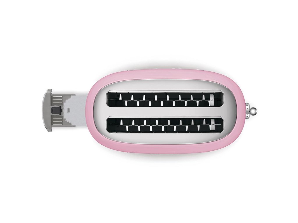 Smeg TSF02PKEU, toustovač / topinkovač, 4 toasty, 6 úrovní opékání, zásuvka na drobky, styl. 50. let, růžový
