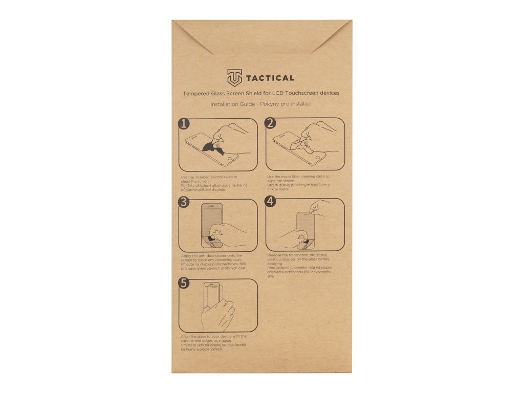 Popis produktu: Prémiové sklo Tactical Glass Shield 2.5D pro nejlepší ochranu displeje. Sklo chrání rovnou část displeje a lepí po celé své ploše. Díky tomu je přilnutí k displeji telefonu perfektní a bez bublin. Tloušťka skla je 0,33mm, na displeji je tak prakticky nerozeznatelné, ale díky tvrdosti 9H dostatečně pevné a odolné, aby ochránilo displej telefonu při nechtěném pádu, nebo lehčími škrábanci. Tvrdost skla 9H označuje Mohova stupnice minerální tvrdosti. Pohybuje se od 1 do 10, kde 10 označuje tvrdost diamantu. Stupnice je reprezentována pouze čísly bez přípony ''H''. Přípona H znamená tvrdost graffitu. H tedy znamená, že ochranné sklo je tvrdší než tento druh grafitu. Sklo je navíc pokryto z výroby oleofobní úpravou, která zabraňuje ulpívání otisků prstů, velmi snadno se čistí a spolehlivě odpuzuje vodu. Po instalaci skla nedochází ke zhoršení dotykových vlastností displeje ani ke zkreslení barevného podání displeje. Součástí balení je alkoholový ubrousek pro vyčistění a odmaštění displeje, hadřík z mikrovlákna pro perfektní vyleštění před instalací a i následně při používání telefonu s již nalepeným sklem. NEODOLATELNĚ ODOLNÝ U nás v Tactical dbáme na to, aby věci něco vydržely a za kvalitou svých výrobků si stojíme! Proto jsme v rámci nadstandartní péče Tactical schopni na tento produkt nabídnout DOŽIVOTNÍ ZÁRUKU. BE ECO My v Tactical máme rádi přírodu. Všechny naše produkty jsou balené do ECO krabiček z recyklovaného papíru tak, aby co nejméně zatěžovaly životní prostředí. Myslete takticky! Vlastnosti: - sklo je rovné a kryje tak jen rovnou část displeje. Končí v místě, kde se displej začíná ohýbat - sklo lepí po celé ploše - vyrobené na míru konkrétního modelu telefonu - vysoká odolnost proti poškrábání - tloušťka skla pouze 0,33mm - tvrdost skla je 9H - oleofobní úprava zabraňující zanechávání otisků prstů a pro snadné čištění - perfektní optické vlastnosti - nezkresluje obraz - neovlivňuje citlivost displeje na dotyk - vše potřebné k instalaci v balení - ekologické balení z recyklovaného papíru - doživotní záruka Obsah balení - tvrzené sklo Tactical - alkoholový ubrousek pro dokonalé vyčištění displeje - hadřík z mikrovlákna - samolepky pro pohodlnou instalaci skla Návod na nalepení skla Displej co nejpečlivěji očistěte přiloženým hadříkem namočeným v alkoholu. Po zaschnutí povrch displeje vyleštěte přiloženým hadříkem z mikrovlákna. Než přiložíte sklo na displej, ujistěte se, že na displeji nezůstaly žádné, byť sebemenší nečistoty, které by bránily dokonalému přilnutí skla na displej. Věnujte pozornost i místům okolo sluchátka, kde se často drží prach a nečistoty, které by sklo znehodnotily. Sklo opatrně přiložte nad displej, tak aby se překrývaly přesně výřezy pro kameru, sluchátko nebo senzor přiblížení a aby sklo bylo na výšku i šířku perfektně vycentrované. Poté sklo přitiskněte na displej a od středu vytlačte vzduch do krajů.* Obrázek je pouze ilustrační a zobrazuje stejné ochranné sklo pro jiný model telefonu. Výřezy na fotoaparát jsou dle daného telefonu.