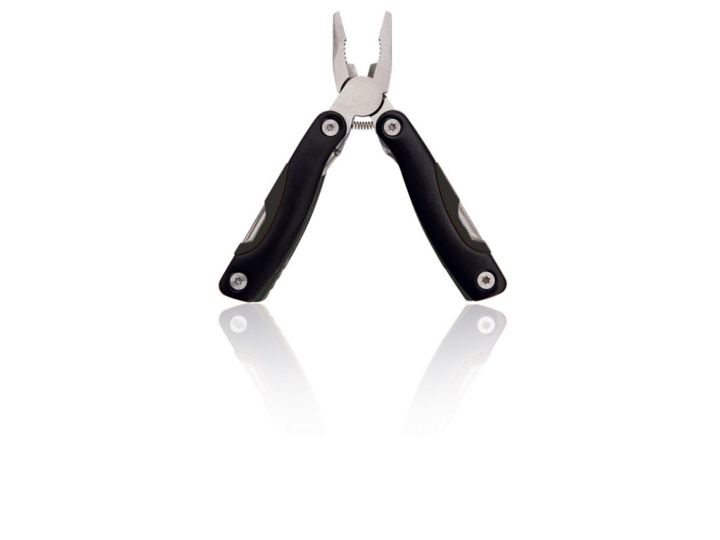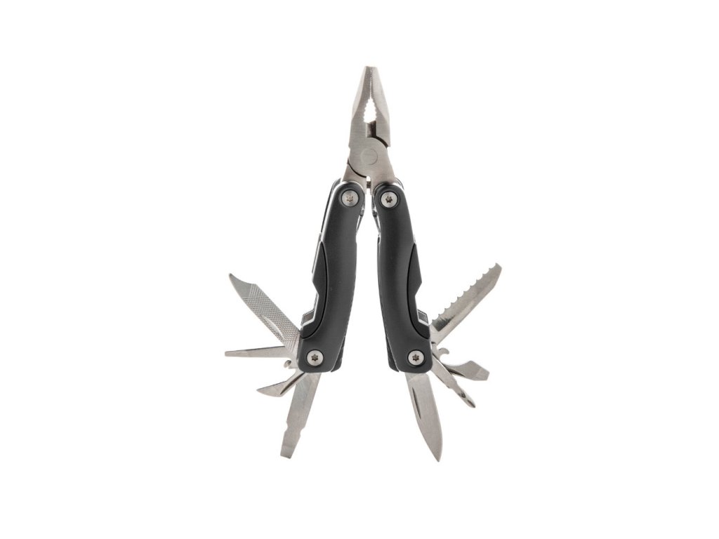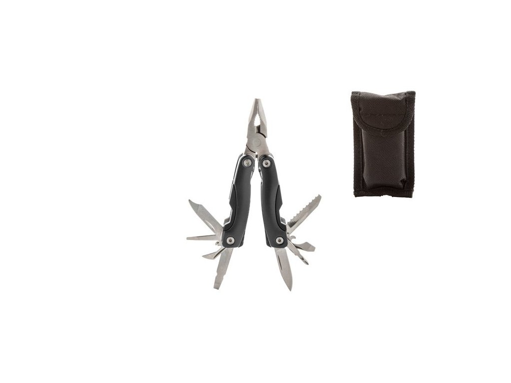 - Počet funkcií: 9 (kliešte, štiepačky, nôž, pílka, krížový a plochý, otvárač fliaš, otvárač na konzervy, pilník)