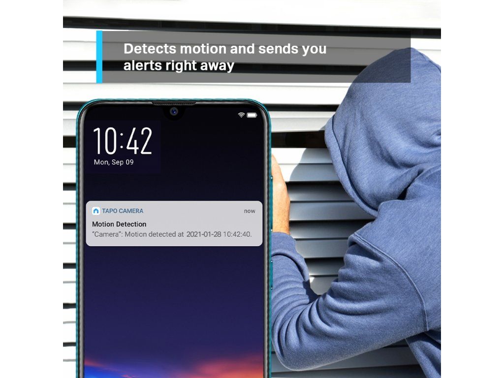Budete v obraze, kedykoľvek sa niečo udeje. Kamera disponuje presným senzorom pohybu. Keď zachytí neočakávanú aktivitu, ihneď odošle push notifikáciu priamo na váš mobil. V samotnej kamere je zabudovaný aj systém zvukového a svetelného alarmu, ktorým môžete jednoducho vystrašiť a odradiť nežiaducich návštevníkov ešte predtým, než spôsobia škodu.