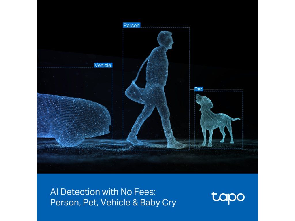 Mnohé značky si za inteligentnú analytiku účtujú mesačné paušály. Tapo C246D spracováva dáta lokálne. Jej AI Detection with no fees spoľahlivo a zadarmo rozpozná v zábere osobu (Person), zviera (Pet) či auto (Vehicle). Taktiež akusticky vyhodnotí detský plač (Baby cry) a následne vám odošle cielenú notifikáciu, čím výrazne šetrí váš čas.