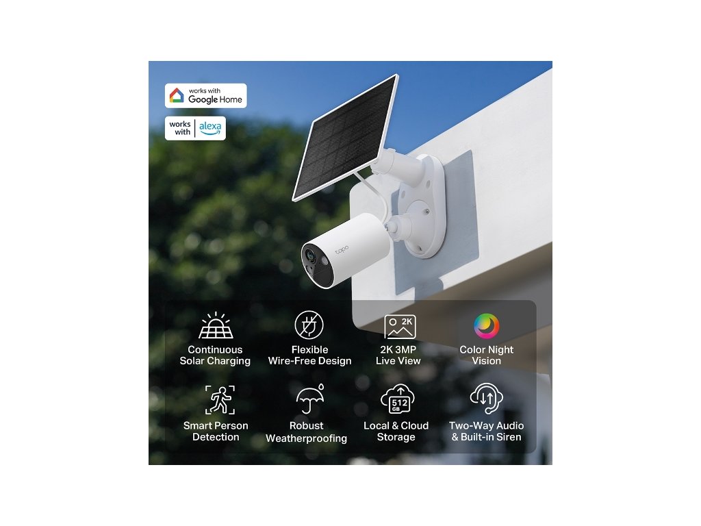 - Vychutnajte si bezúdržbové zabezpečenie vďaka solárnemu panelu Tapo, ktorý zaisťuje nepretržité napájanie a flexibilnú inštaláciu.