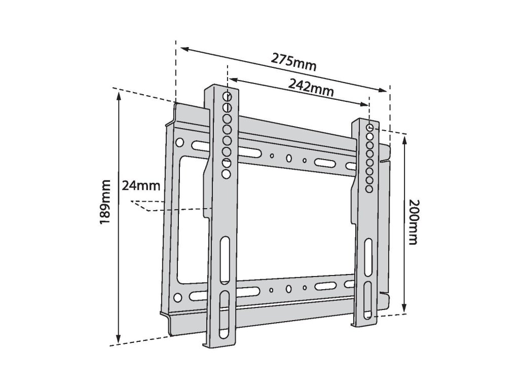 Konstrukce pro upevnění TV na zeď *Použití: TV *Typ držáku: na zeď *Maximální velikost obrazovky: 42'' *VESA: *75 x 75 *100 x 100 *200 x 100 *200 x 200 *Maximální hmotnost: 40 kg *Rohový držák: ne *Materiál: kov *Barva: černáDodatočné parametre