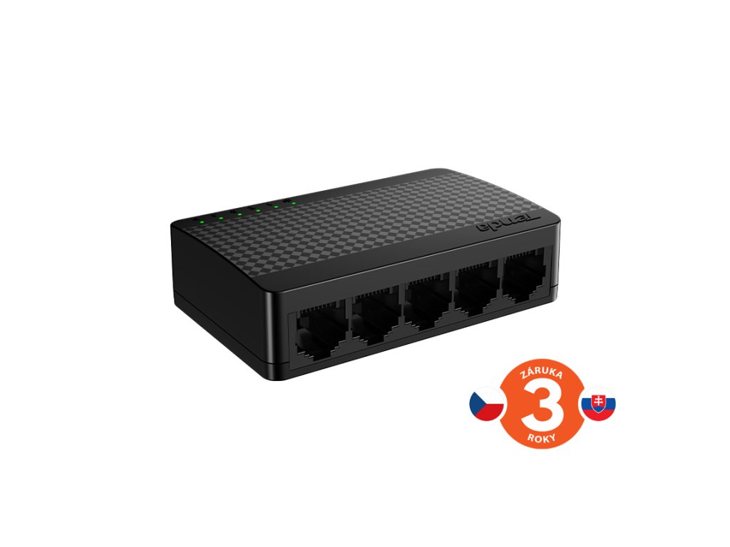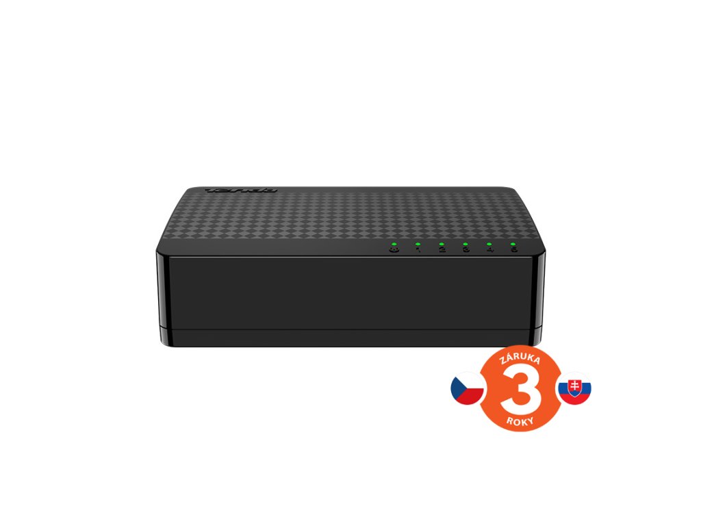 SG105M - 5ti portový Gigabitový desktop Ethernet switch s miniaturními rozměry. Nízká spotřeba energie max. 1,7W. Přepínací kapacita 10Gb/s. Rychlosti 10/100/1000Mb/s. MAC tabulka 2K, Jumbo frame 15K. Automatické přepínání MDI/MDIX. Součástí balení je český, slovenský a polský manuál. Popis produktu Tenda SG105M je miniaturním gigabitovým switchem s velmi nízkou spotřebou el. energie. Je ideální volbou pro připojení NAS serverů, herních konzolí, multimediálních TV, přehrávačů a PC. Díky automatickému přepínání rychlostí 10/100/1000Mb/s je plně kompatibilní s každým zařízením. Je určen pro použití v domácnostech a malých firmách. Díky speciální technologii řízení spotřeby energie je max. spotřeba 1,7W. Plně podporuje standarty IEEE 802.3, 802.3u, 802.3x, 802.3ab. Přepínací kapacita 10Gb/s. Jednoduchá instalace Tenda SG105M je plně automatizovaná, a není nutné žádné nastavení. Stačí pouze připojit napájení a jednotlivé kabely RJ45, a SG105M se o vše postará. Díky funkci Auto MDI/MDIX není nutné ověřovat zdali připojujete křížené nebo nekřížené kabely, automaticky vše nastaví. Technické parametry Způsob ovládání: bez managementu Počet RJ45 portů: 5x 10/100/1000 Mb/s LED indikace: 1x Linka/Aktivita pro každý port Buffer: 1M MAC tabulka: 2K Jumbo frame: 15K Montáž na stěnu: ano Parametry zdroje: 5V DC 600mA Rozměry (v x š x h): 82 x 52 x 22 mm Provozní teplota: 0° až 45 °C Spotřeba: max. 1,7W Celková propustnost: 10 Gb/s Chlazení: pasivní Obsah balení 1x Tenda SG105M 1x Stručná instalační příručka (CZ, SK, PL) 1x Napájecí adaptér (5V DC 600mA)Dodatočné parametre