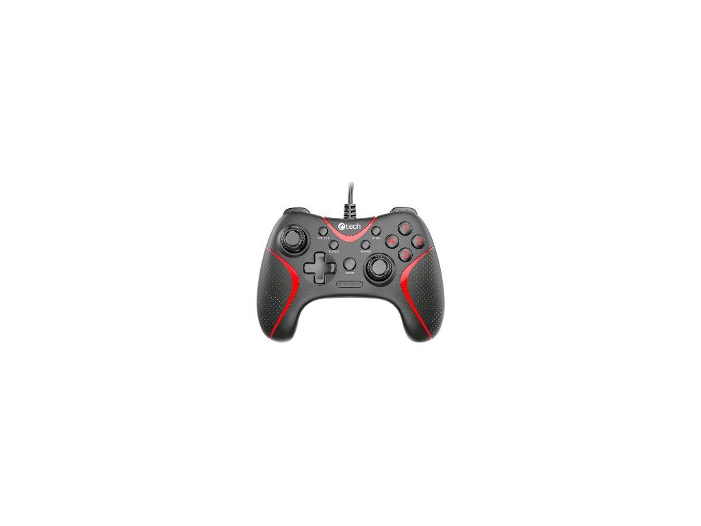 15 tlačidiel, dva analógové joysticky, osemsmerný ovládač a 2 vibračné motorky