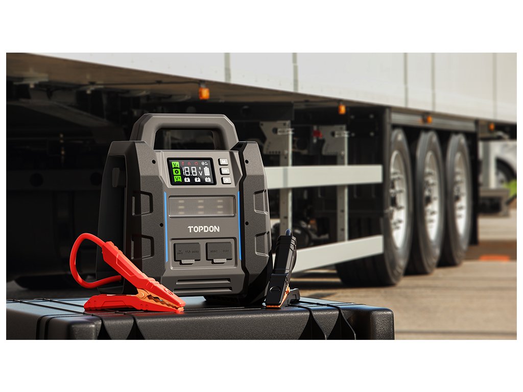 Jump štartér TOPDON V4500 Plus ponúka dokonalé riešenie napájania pre vozidlá s veľkým objemom, ako sú návesy a prívesy. So špičkovým prúdom 4500 A je špeciálne navrhnutý pre automobily s napätím 12 V a je vhodný pre benzínové a dieselové vozidlá s objemom motora až 16 litrov.