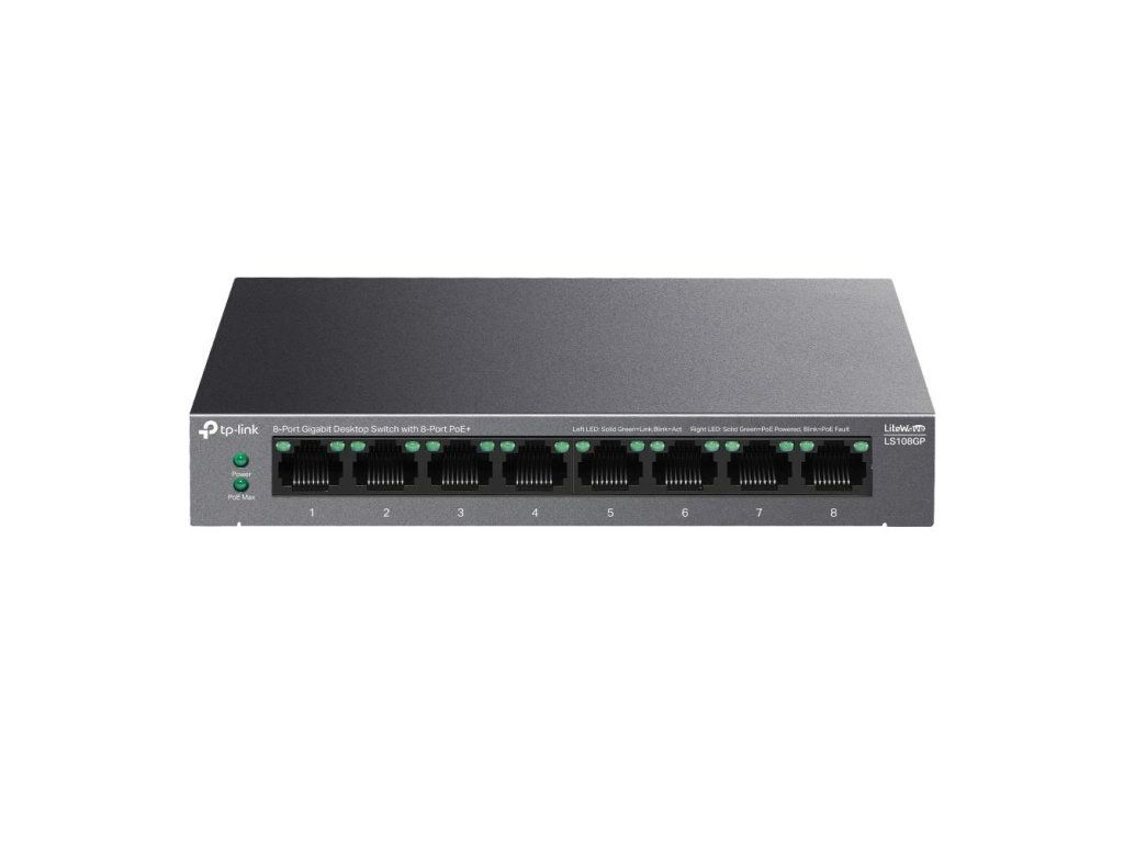 TP-Link LiteWave switch LS108GP (8xGbE, 8xPoE+, 62W, fanless)