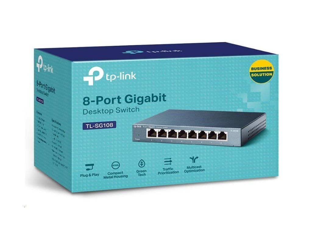 TP-LINK 8 10/100/1000Mbps Desktop Prejsť TL-SG108 vám poskytuje jednoduchý spôsob, ako urobiť prechod na gigabitový Ethernet. Zvýšte rýchlosť vášho sieťového servera a chrbticovej spojenie, alebo sa Gigabit na plochu reality. Navyše, TL-SG108 prijíma nižšiu spotrebu energie dizajn. Vďaka inovatívnej energeticky účinných technológií, môže TL-SG108 ušetriť až 72% spotreby elektrickej energie, čo je šetrné k životnému prostrediu riešenie pre váš domáce alebo kancelárske sieti.