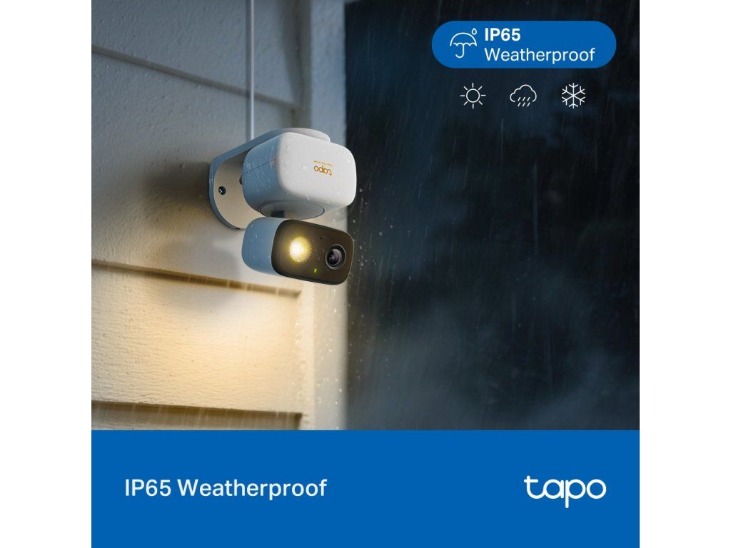 Bezpečnosť nesmie závisieť od počasia. Tapo C236 disponuje certifikáciou IP65, čo zaručuje jej úplnú prachotesnosť a spoľahlivú ochranu proti vode. Či už čelí letnej búrke, alebo silnému vetru, zariadenie bude stabilne a nepretržite fungovať.