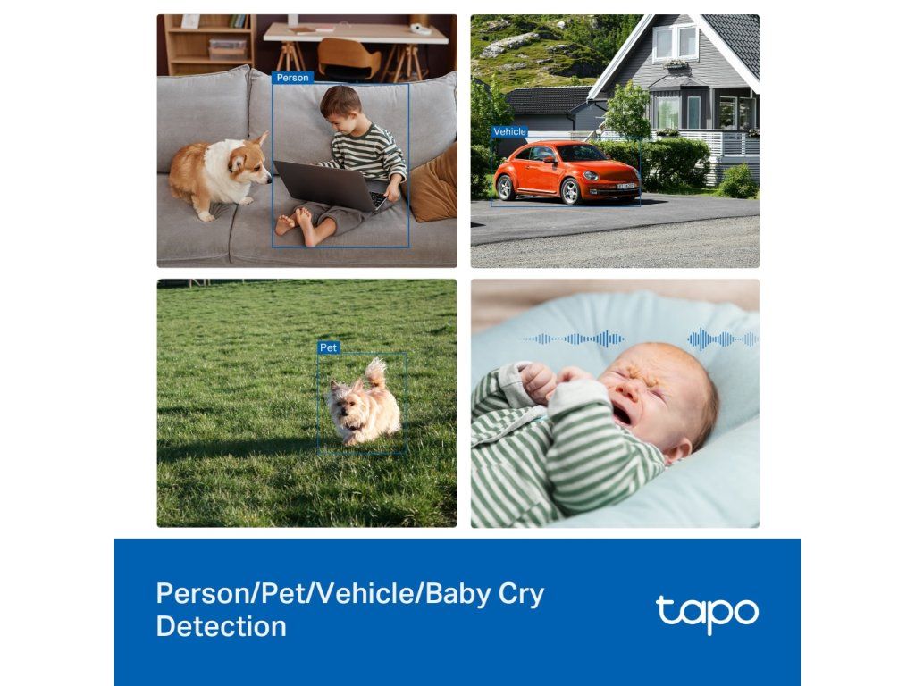 Buďte upozornení iba na to dôležité. Vstavaná AI dokáže rozoznať, či je v zábere osoba, domáce zviera, alebo vozidlo. Zariadenie analyzuje aj zvuky a vie spoľahlivo identifikovať detský plač. Upozornenia sú tak presné a znižujú množstvo falošných poplachov na minimum.