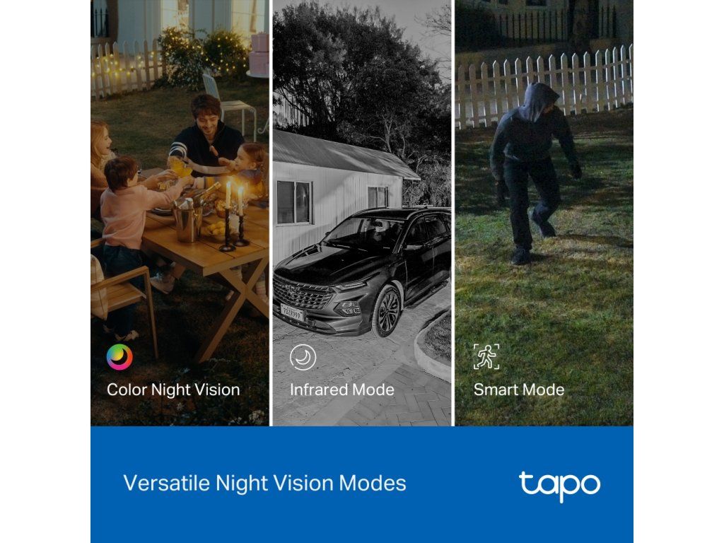 - Chytré nočné videnie: Vyberte si z živého plnofarebného režimu s bodovými svetlami, diskrétneho čiernobieleho infračerveného režimu alebo automatického inteligentného režimu založeného na detekcii svetla AI pre optimálnu ostrosť v akomkoľvek nočnom scenári.