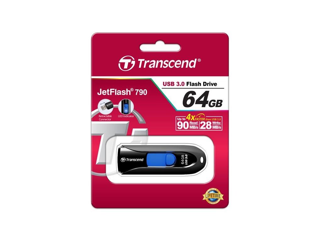TRANSCEND Flash disk 64GB JetFlash®790, USB 3.1 (R:90/W:30 MB/s) čierna/modrá