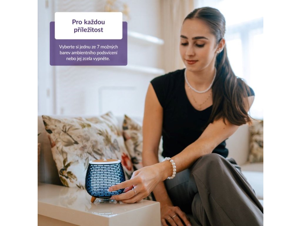 Stačí chvíľka a difuzér TrueLife premení vzduch v miestnosti, zvlhčí ho a prípadne naplní príjemnou vôňou esenciálneho oleja pomocou technológie OilFlow. Zároveň však vie vytvoriť jedinečnú atmosféru vďaka podsvieteniu, kde si máte možnosť zvoliť až zo 7 farebných variantov.