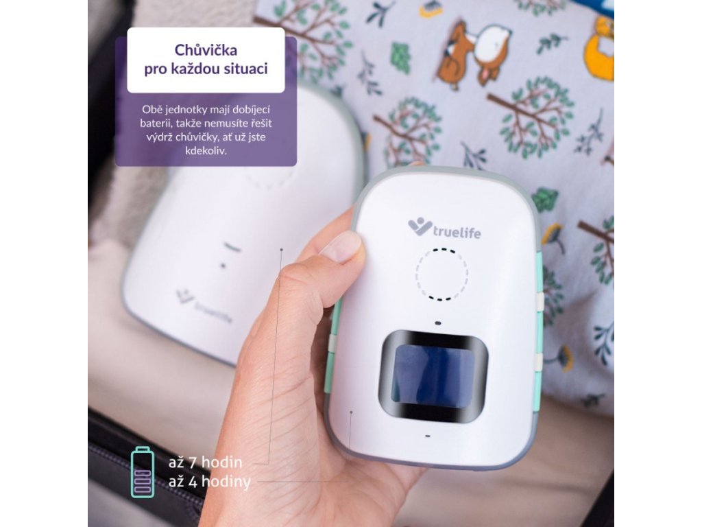 Majte svojich najmenších pod dohľadom, aj keď s nimi práve nie ste v miestnosti. Digitálna audio pestúnka TrueLife NannyTone VM3 zachytí každý zvuk a prenesie ho do rodičovskej jednotky až na vzdialenosť 800 m v nezastavanej oblasti a až 300 m v budove. Než ku dieťaťu prídete, môžete ho utešovať cez pestúnku vďaka možnosti obojsmernej komunikácie. Vybrať je možné aj z 8 integrovaných uspávaniek. Poteší tiež tichým režimom s vibráciami. Integrované batérie v oboch jednotkách majú naozaj dlhú výdrž, pokiaľ by však dochádzali, pestúnka vás včas upozorní. Obdobne sa ihneď dozviete, ak príde ku strate signálu alebo detektor zaznamená nízku či vysokú teplotu v izbe dieťatka.