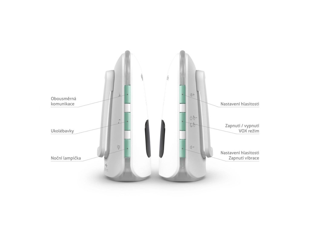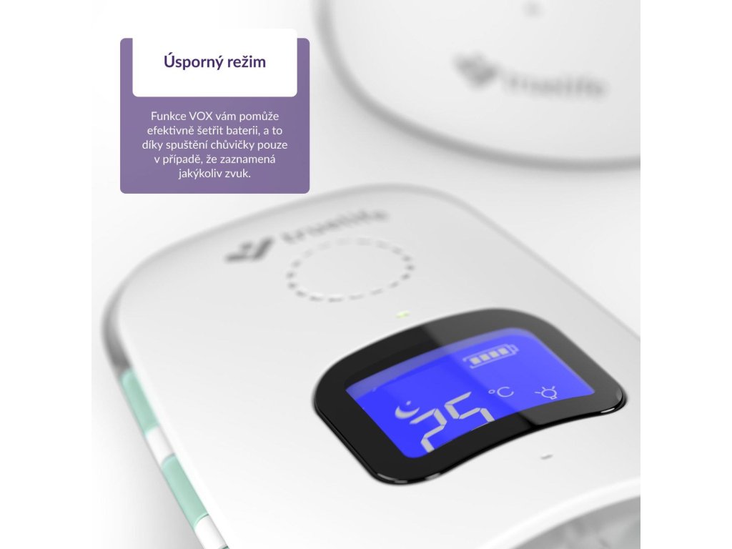 V prípade, že je aktivovaný režim VOX, sa detská jednotka aktivuje až vo chvíli, keď zaznamená nejaký zvuk. Tento režim tak zvyšuje výdrž batérie v oboch jednotkách.