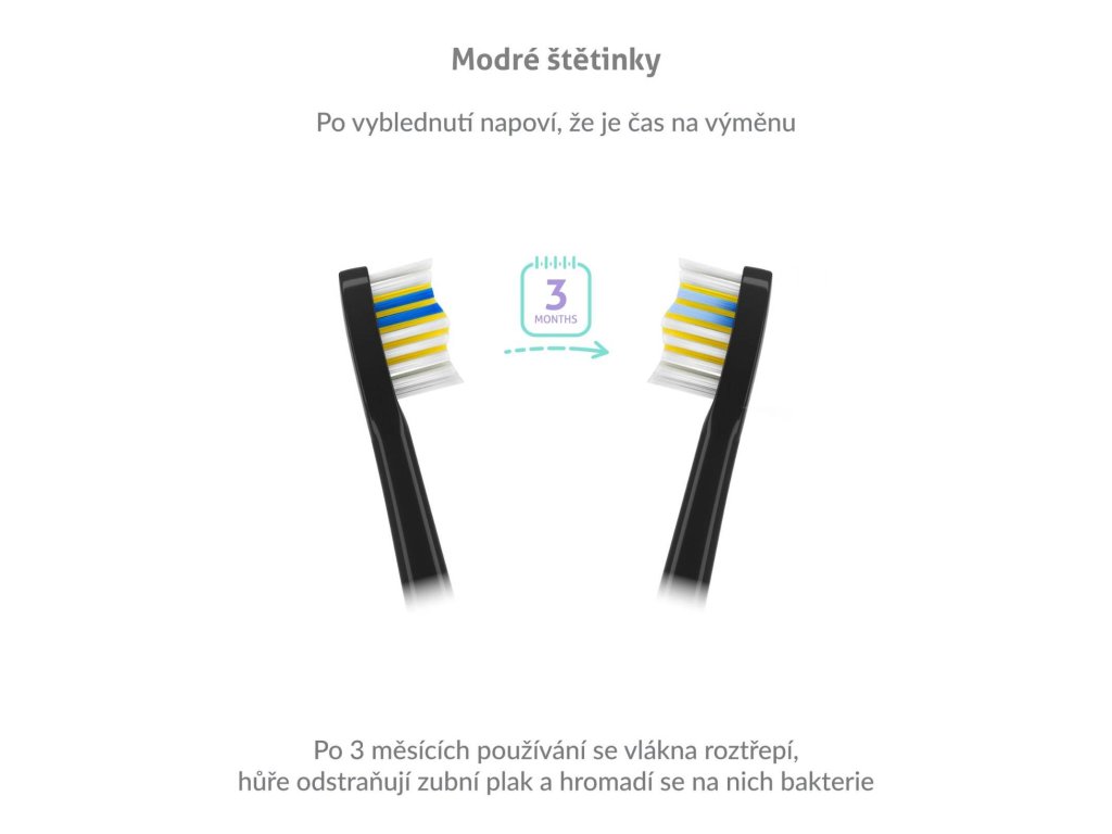 Hlavice disponujú modrými štetinkami, ktoré indikujú mieru opotrebenia. Jednoducho spoznáte, že je na čase hlavicu vymeniť.