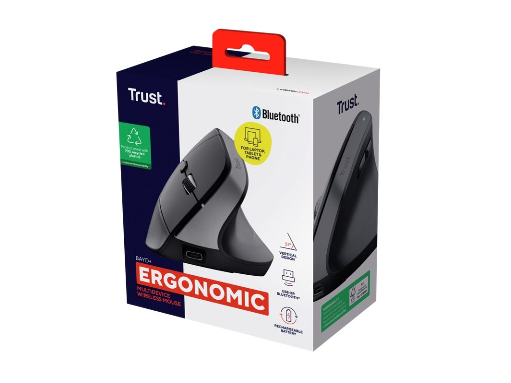 Trust Bayo+/Vertikálna/Optická/Pre pravákov/2 400 DPI/USB+BT/Čierna