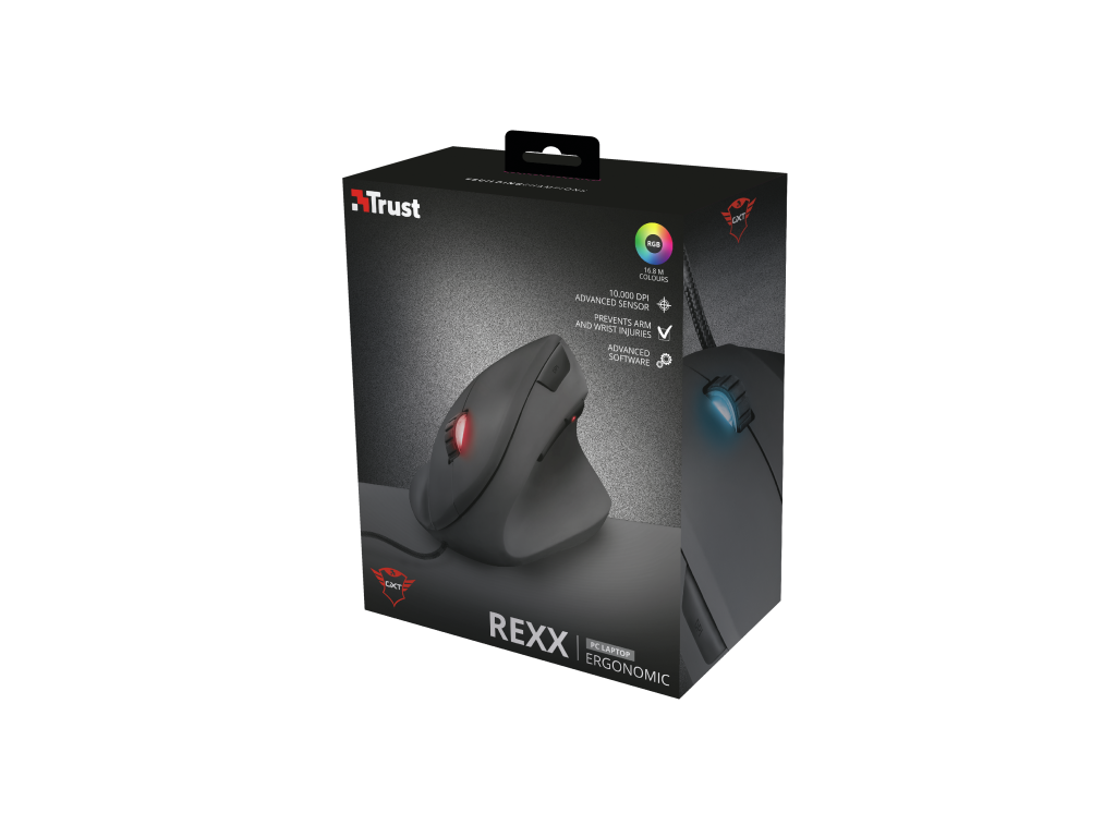 * Pokročilý software pro programování tlačítek, maker a světel Více informací na stránkách výrobce: https://trust.com/en/product/22991-gxt-144-rexx-vertical-gaming-mouse