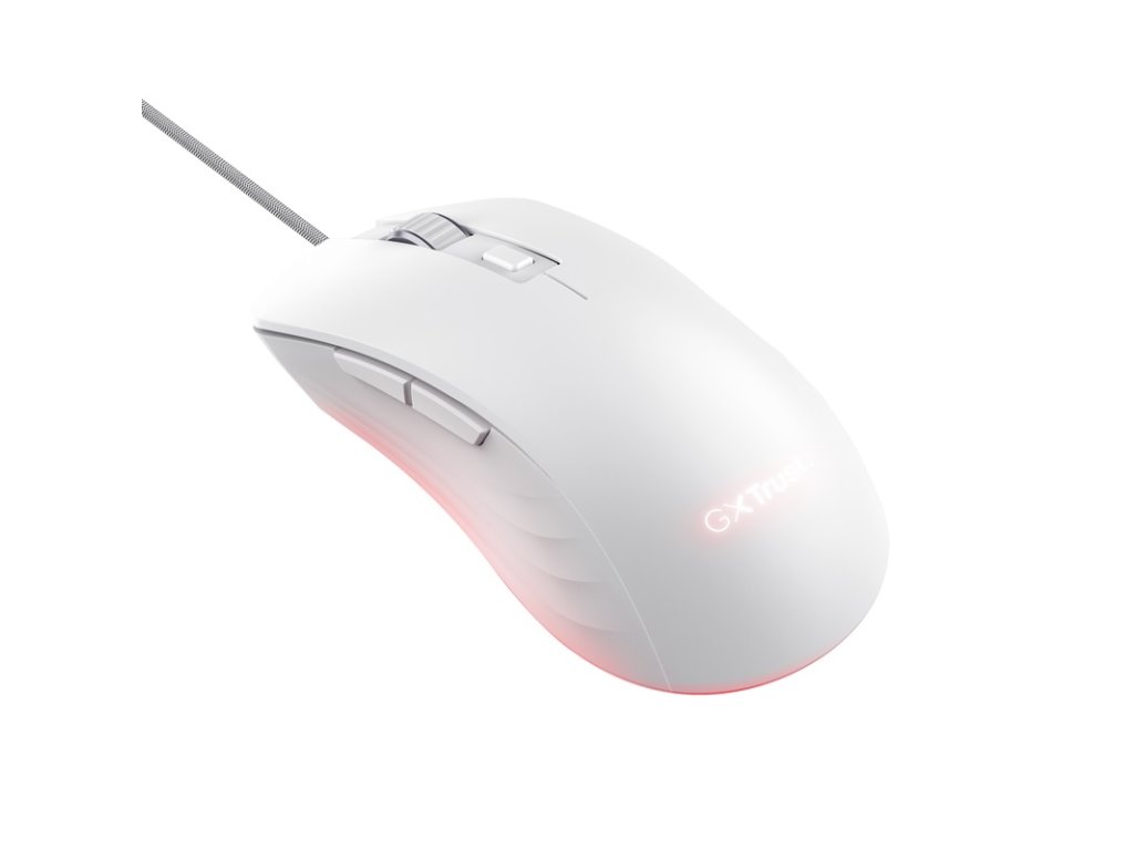 Trust GXT924W YBAR+/Herná/Optická/Pre pravákov/25 600 DPI/Drôtová USB/Biela