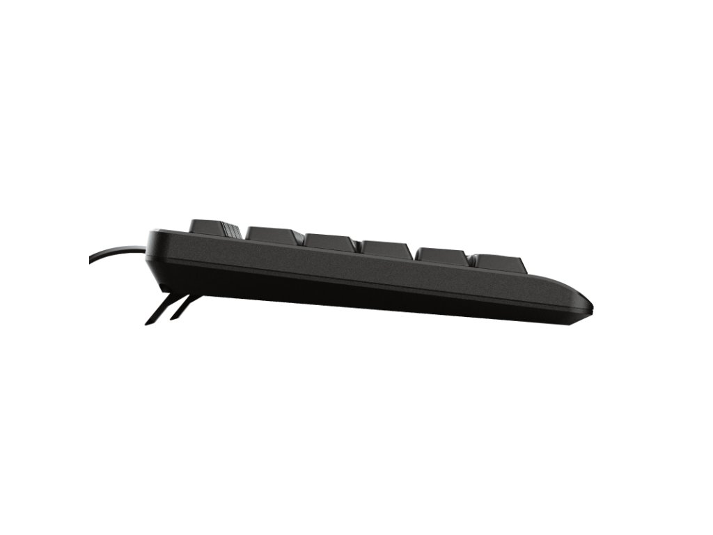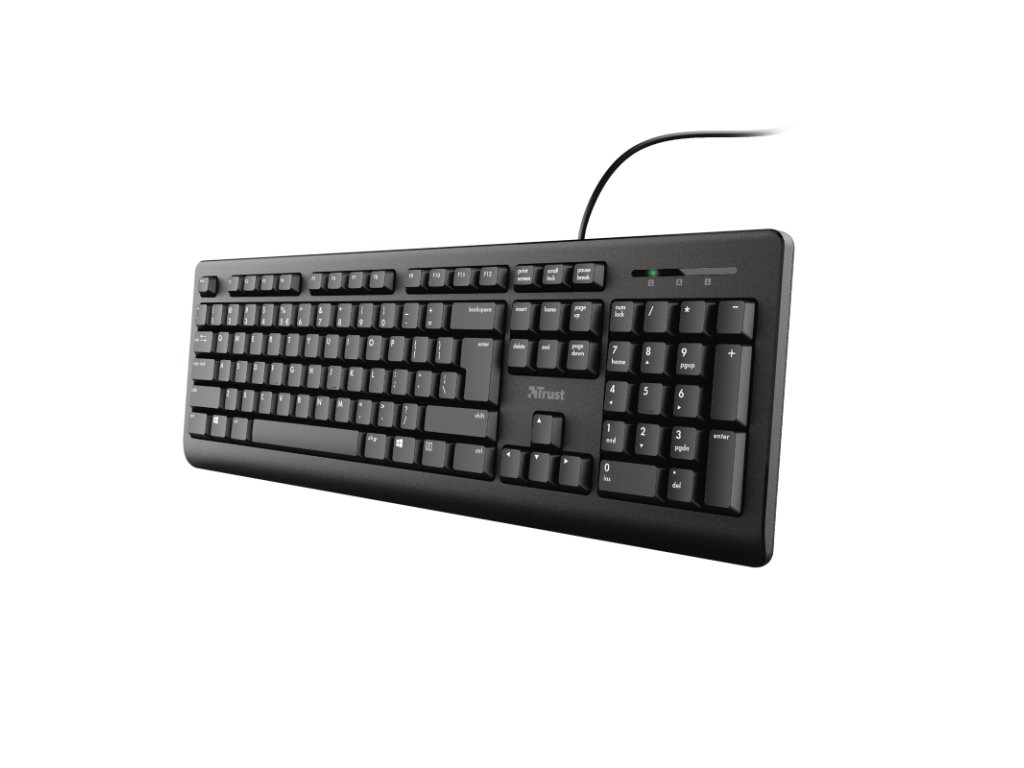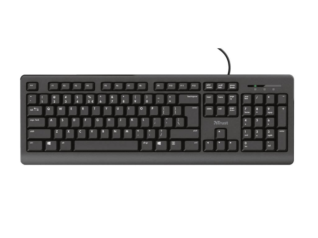 Trust Primo Keyboard klávesnice plné velikosti s tichými klávesami a designem odolným proti polití. Klávesnice přicházejí ve všech tvarech a velikostech, ale co když potřebujete pouze základní funkce? Trust Primo to přesně dělá. Má rozložení v plné velikosti, klávesy odolné proti polití a je výškově nastavitelné. A díky tichým klávesám budete psát celé hodiny, aniž byste obtěžovali své spolupracovníky. Technické parametry *Typ připojení: kabelové *Délka kabelu: 180 cm *USB verze: 2.0 *Typ konektoru: USB-A *Klávesová technologie: membrána *Layout: CZ/SK *Rozměry: 30 x 449 x 148 mm *Hmotnost: 488 gDodatočné parametre