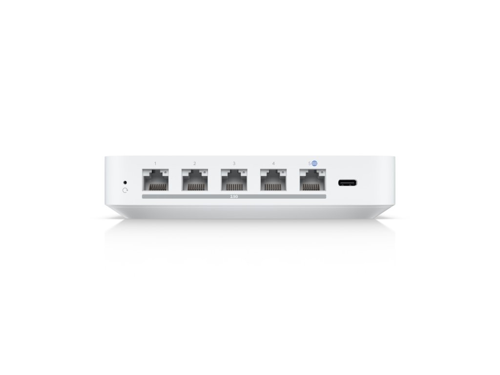 UniFi Gateway Max kompaktní multi-WAN UniFi brána s plnou podporou 2,5GbE pro vysoce výkonné sítě v malých až středních podnicích Vlastnosti brány * WiFi QoS s UniFi AP * sledování kvality a výpadků internetu * detekce hrozeb IPS/IDS * filtrování na základě obsahu, země, domény a reklamy * segmentace provozu na základě VLAN/podsítě * správa pomocí Cloud Key, Official UniFi Hosting, nebo UniFi Network Server * podpora různých druhů VPN (L2TP, OpenVPN, WireGuard) * DHCP * IPv6 ISP podpora * odolnost proti neoprávněnému vniknutí IK04 Technické parametry Procesor: čtyřjádrový ARM® Cortex®-A53 na 1,5GHz Paměť: 2GB DDR4 Rozhraní pro správu: * Ethernet * Bluetooth Síťové rozhraní: * 1x 2,5GbE RJ45 WAN * 4x 2,5GbE RJ45 LAN Zdroj napájení: USB typ C (5V/3A) Max. spotřeba energie: 9,6W Provozní teplota: -10 až 40°C Rozměry: 141,8x127,6x30mm Hmotnost 520g Obsah balení: * Gateway Max * napájecí adaptér * gumové podložkyDodatočné parametre