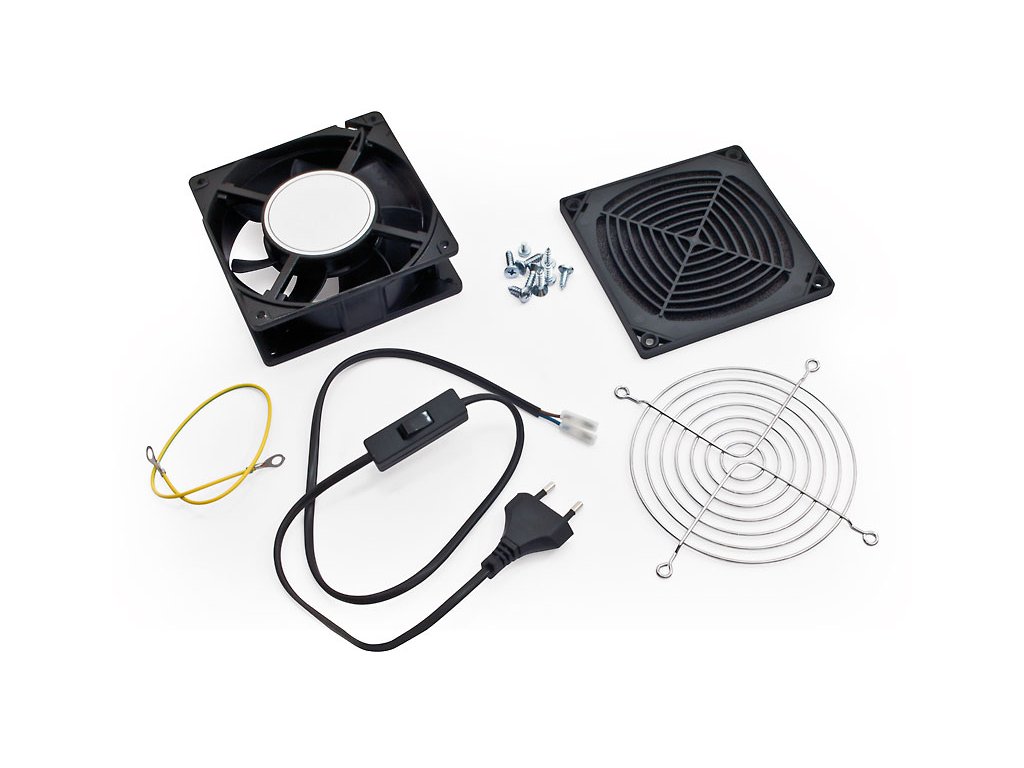 Ventilátor-sada pro montáž do rozvaděče- 230V,50Hz, 0.09 A, 15W 160m3/h RAX-CH-X07-X9 Sada obsahuje: - samostatný ventilátor RAX-CH-X06-X9, - plastovou mřížku s filtrem RAX-CH-X02-X9, - kovovou mřížku RAX-CH-X03-X9, - montážní materiál - zemnící kabel - rozměry ventilátoru: 120 x 120 x 45 mm Termostat není součástí. Rozvaděč RUA má přípravu v podobě vylamovacích záslepek pro osazení přímo touto sadou.Dodatočné parametre