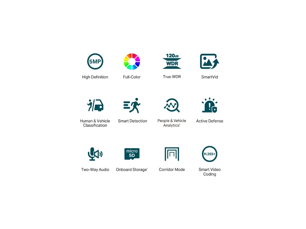 * Profesionální technologie VIGI zpracovávají videa a výrazně zlepšují jejich kvalitu, která je pro vaše sledování zásadní, včetně Smart IR, True WDR, 3D DNR a nočního vidění.