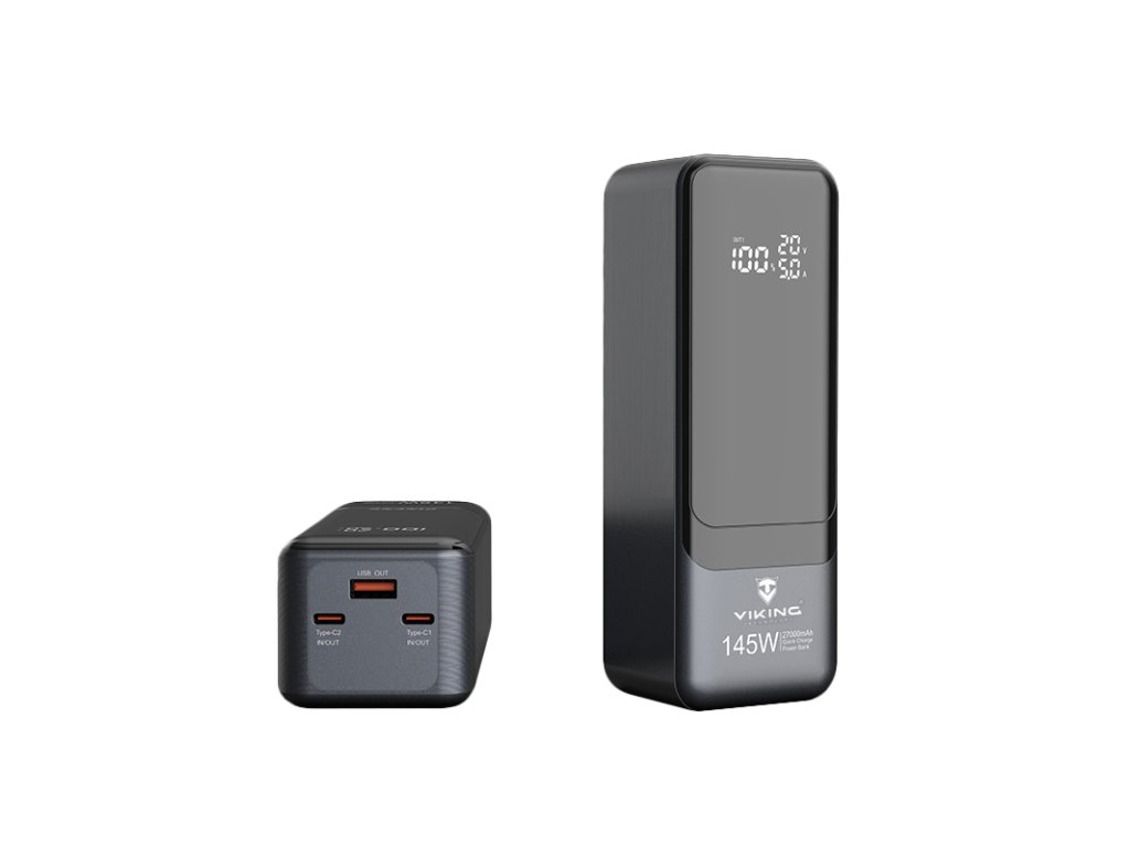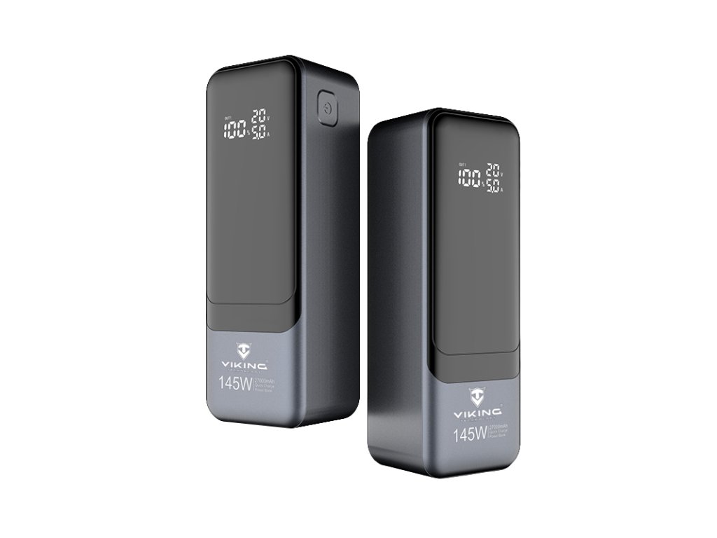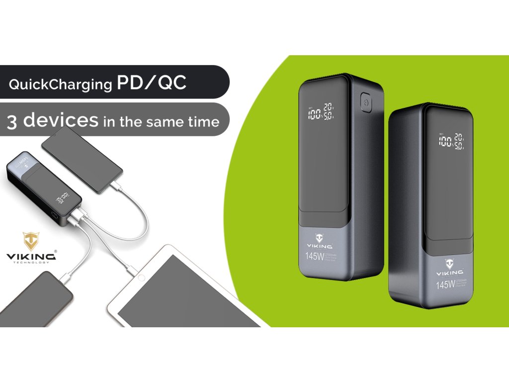 Powerbanka Viking PN-964PD 27000 mAh • Kapacita: 27000mAh/ 97.2Wh • Maximální výkon: 145W • Rychlé nabíjení PD a QC • Vstupy a výstupy (USB-A, USB-C) • Vestavěný inteligentní čip (MCU) • Funkce Pass-Through • LED display • Nabíjení notebooku